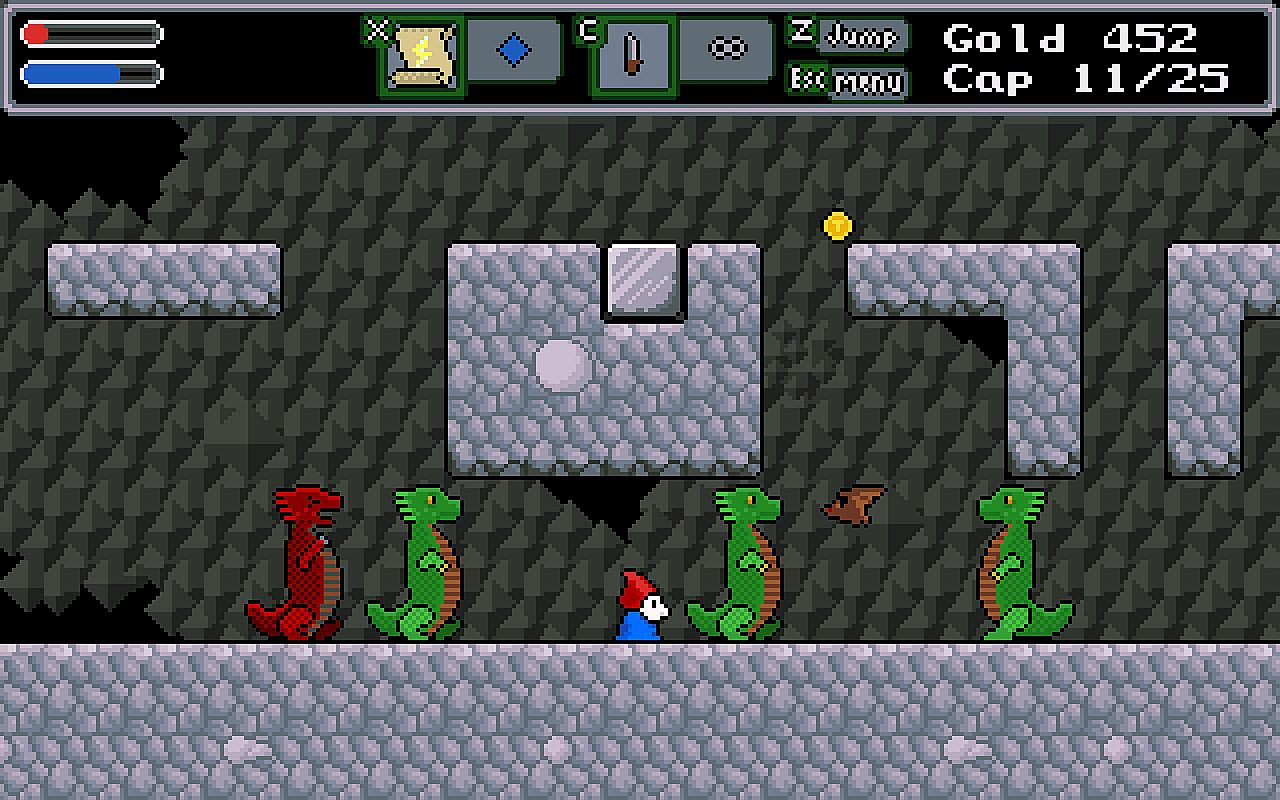 Have a big journey in a small place filled with magic, monsters, and mystery in TIM-TIM 2: "THE ALMIGHTY GNOME", a sidescrolling adventure game about a magic wielding gnome. Questing for love and armed with magical scrolls, you will explore dungeons and find that which was taken.