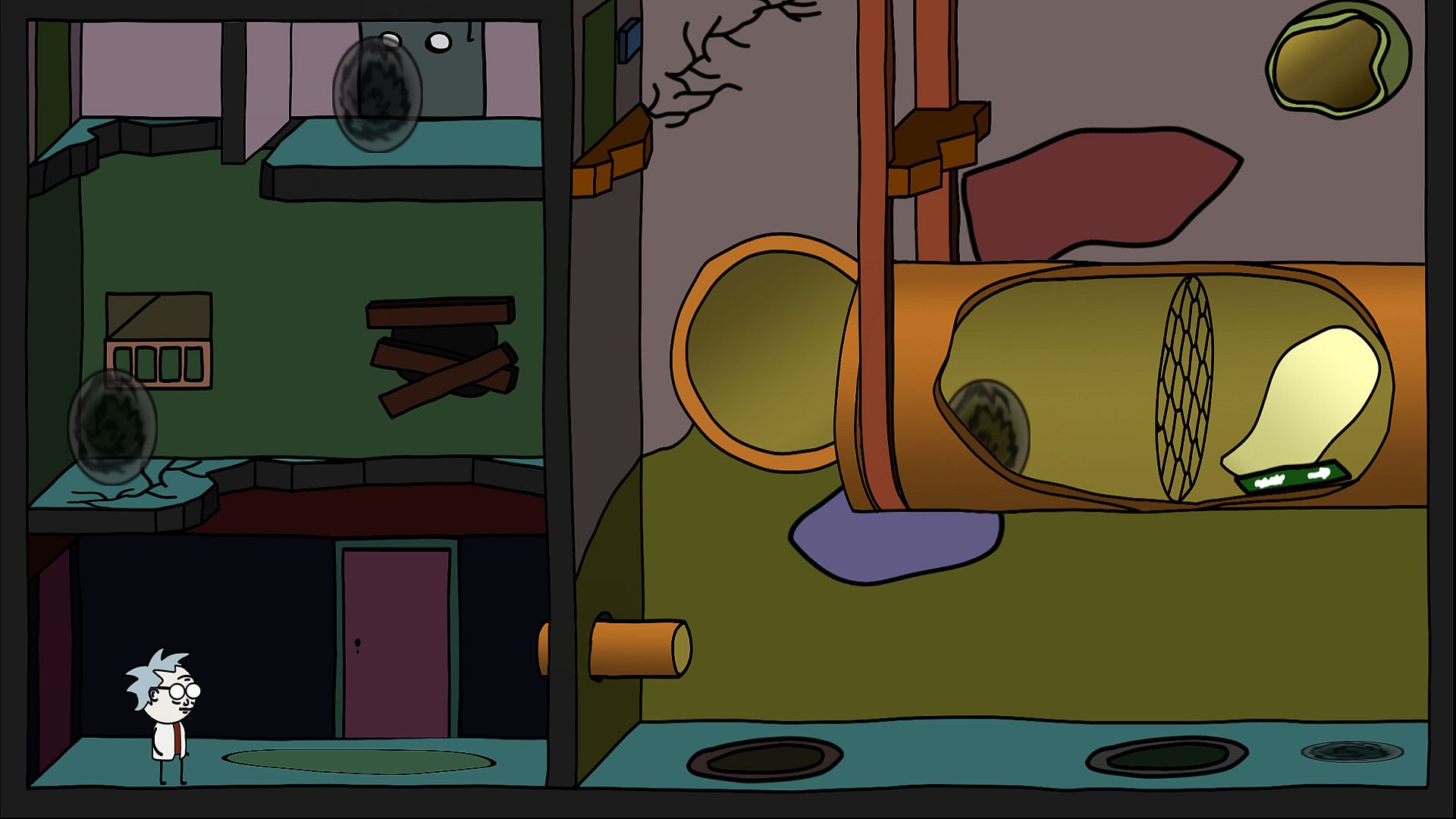 Sensation! The mad scientist has created a time machine! This device is capable of generating a point in time to which you can return from the future! However, something went wrong... The old timeline is not erased, but a new one is written on top of it, which allows two identical scientists to exist at the same time. It was to be expected that manipulation of time would not do good! The entire scientific complex becomes hostage to a time anomaly, are you able to get out of the time trap ?!