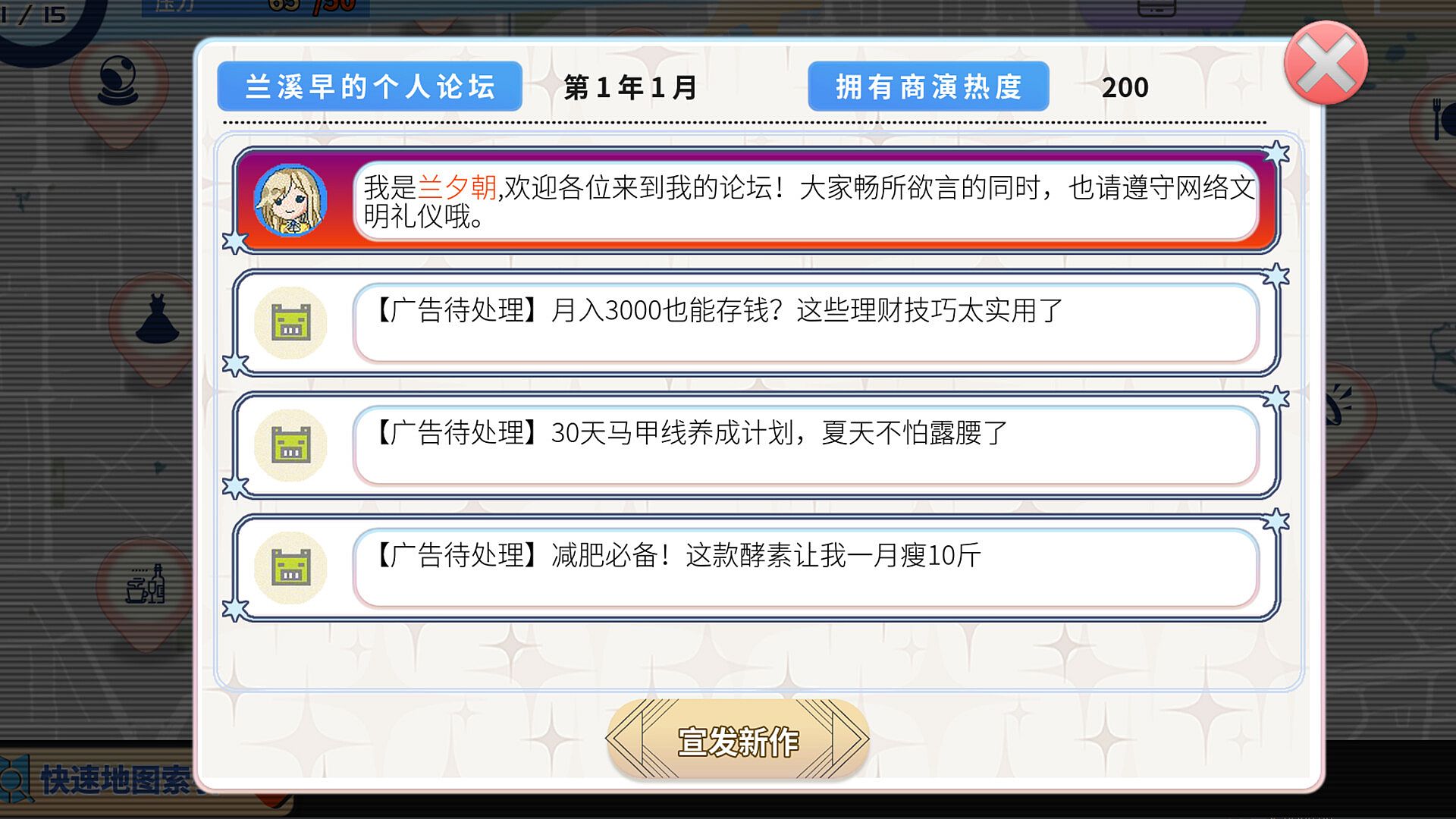 Players can experience working in the entertainment industry, networking with various people, participating in commercial activities, selecting different types of notices, and striving for better results. They can also interact with fans on personal forums, challenge leaderboards, and vie for annual awards. Different choices require different abilities to achieve better effects. The game offers diverse career endings and even allows multiple careers in one playthrough, giving players the freedom to choose different career paths for their endings. This breaks the traditional limitation of seeing results only at the game's conclusion.