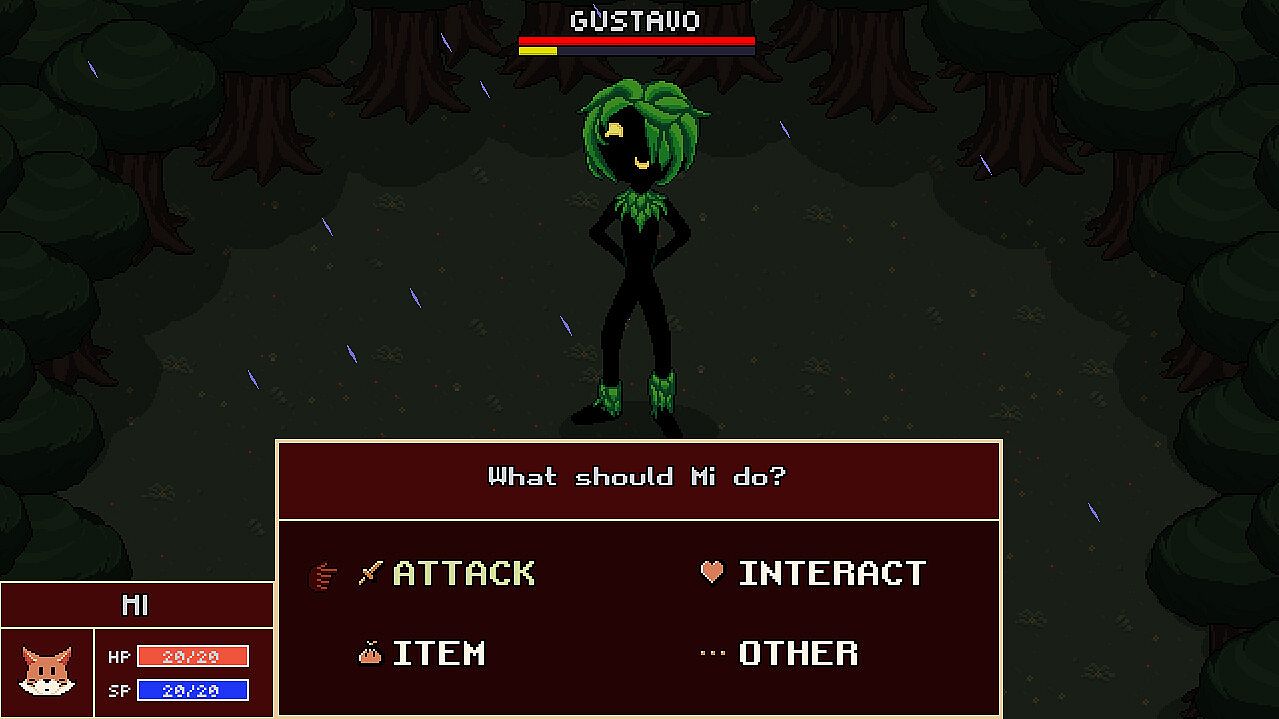 On your journey, you will encounter several creatures in a turn based, bullet hell like combat. But with the right interactions, you can increase their MOOD so that they eventually stop fighting you.