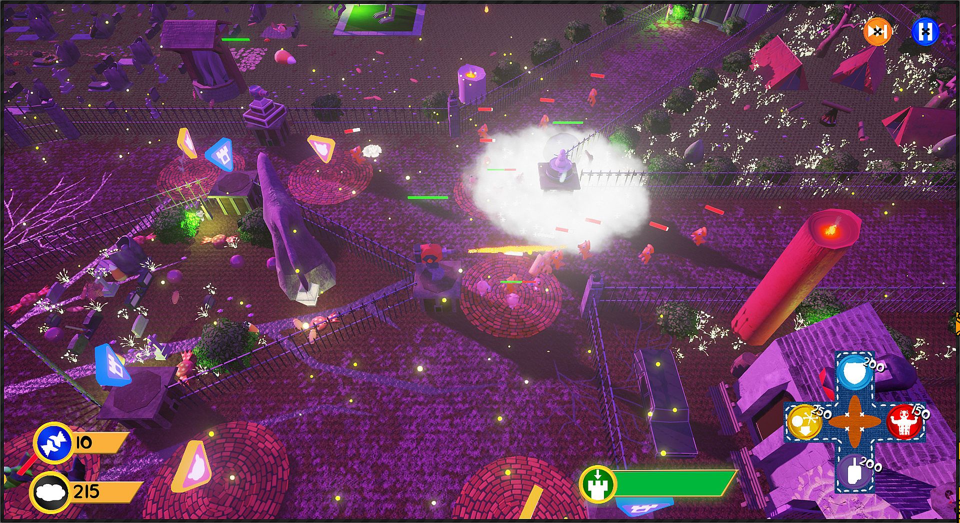 Twitch Action: Control your towers for a massive boost of power and precision, but be careful, they'll have to cool down after use!