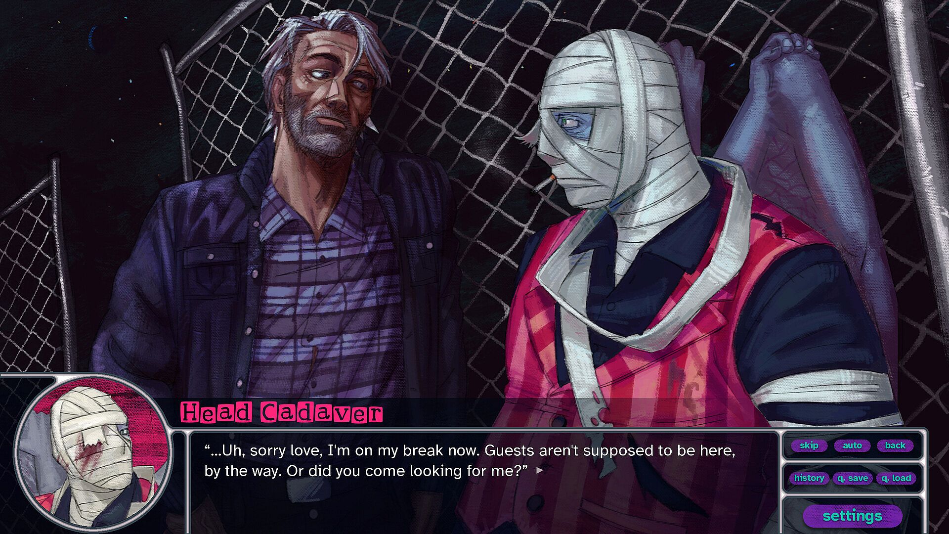 Uncover the mystery of the Ghoul's Grove, hidden in the Australian outback and filled with strange and mutilated scare actors. Darcy, an ex-detective, and his curious daughter, Jess, uncover the truth about the horrors of the carnival when they find one of the disfigured employees murdered. Play as Darcy in this multiple-choice visual novel to find out who did it, but should you have bailed when you had the chance?
