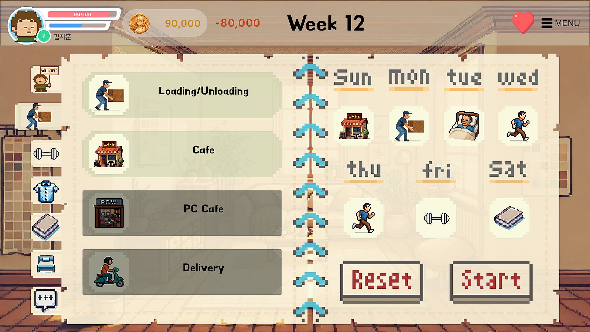 You must achieve your goal before Ariel is summoned back to Heaven! Every day counts. Earn money through part-time jobs, manage your stress by resting, and improve your volunteering skills.