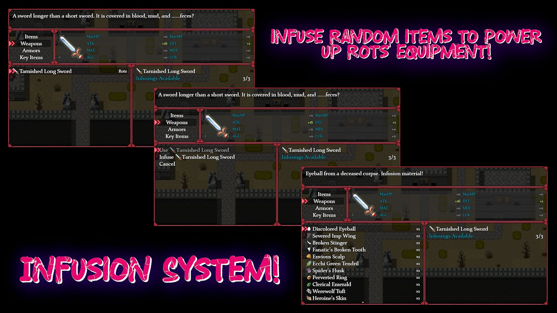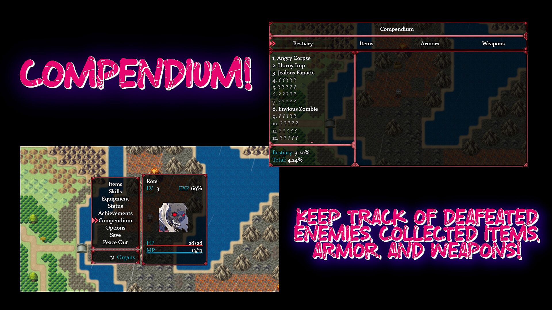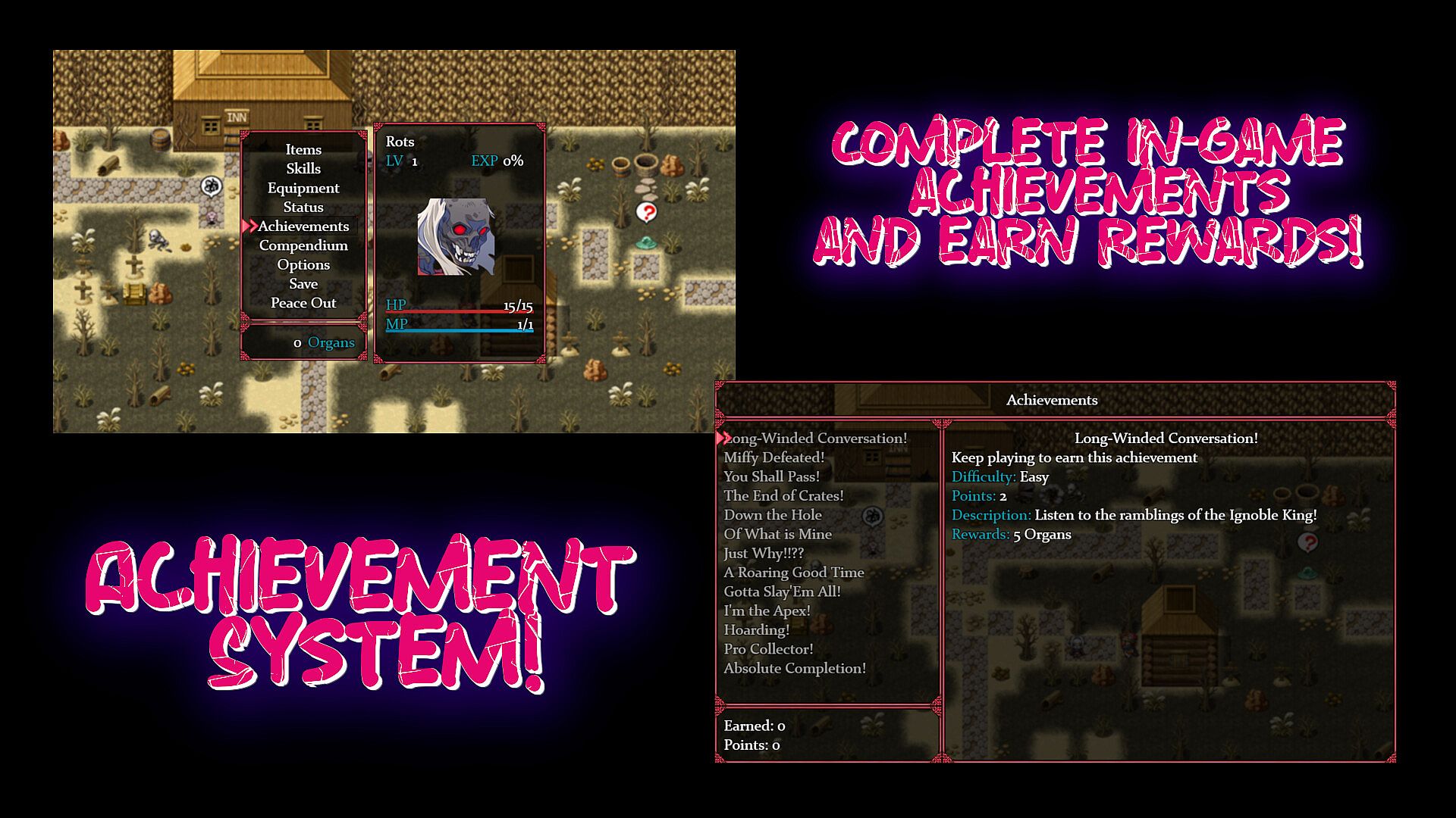 Enter Rots….a foul-mouthed, short-tempered, and belligerent undead female warrior "erected" to serve the Ignoble King completing his mundane tasks and honoring his frustrating requests. Venture into a world that takes jabs at the RPG genre, does not take itself seriously, and has a give no ****s attitude!