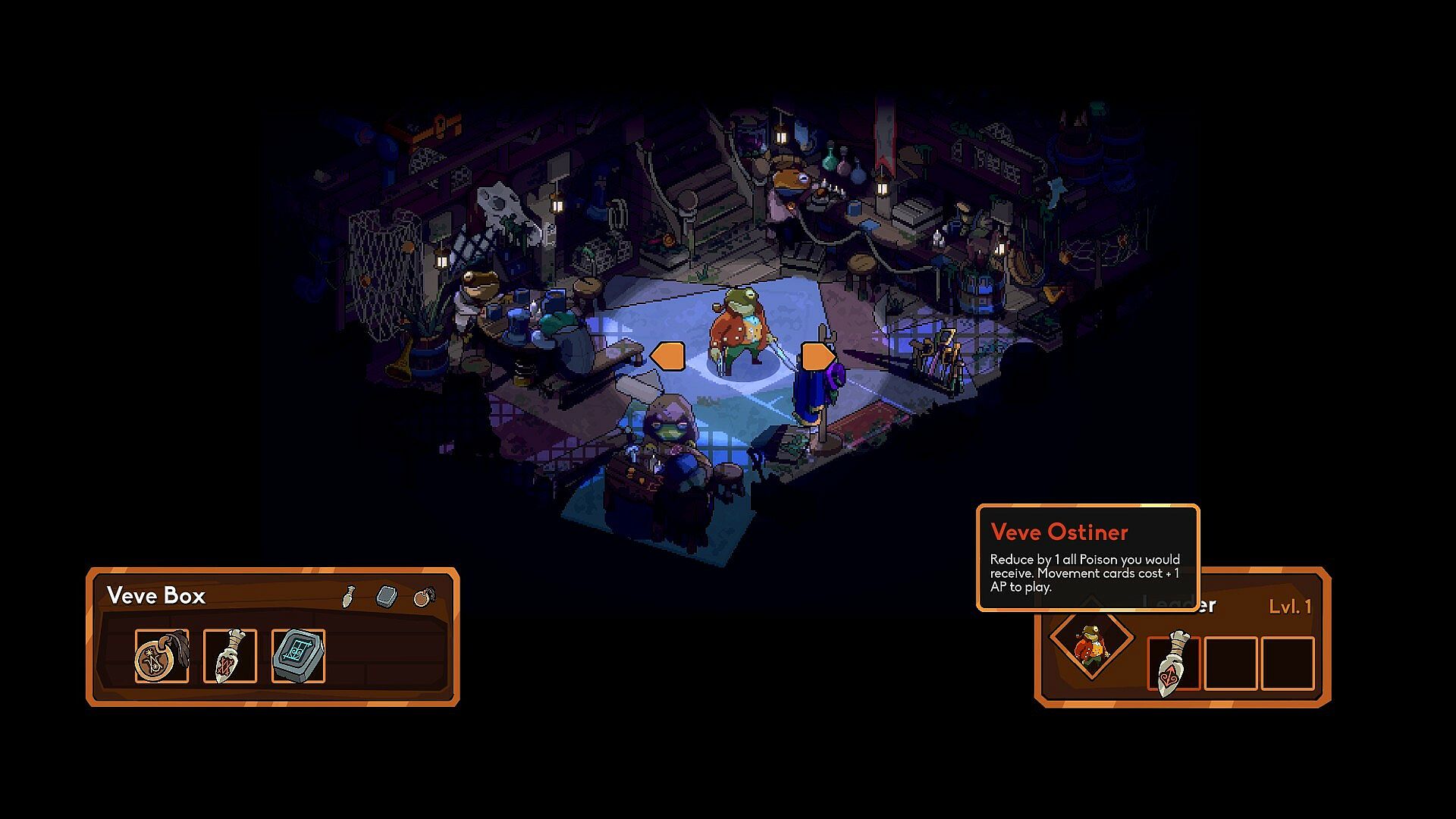 Upgrade and restore the Tavern that will be inhabited by allies who will grant you unique abilities and join you on your journey, powerful cards to add to your deck, traps for strategic combat and Veves to harness vodou powers.