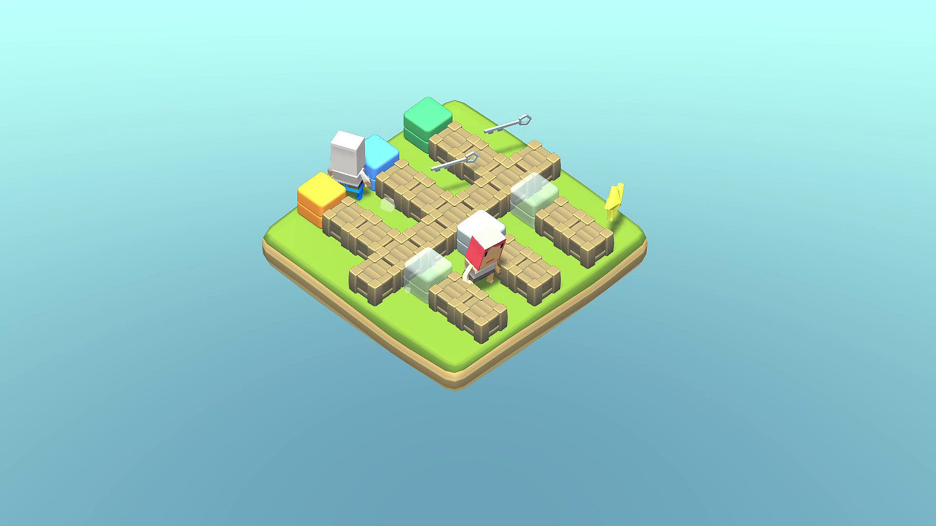 Featuring a cute isometric art style and a relaxing soundtrack, Toggle Cubes offers a delightful experience that can be enjoyed in one sitting. The controls are intuitive—whether you prefer clicking with your mouse, using a keyboard, or a gamepad—and the gameplay is accessible to players of all levels. The characters follow a predictable clockwise path, so it’s all about being smart with how and when you toggle the cubes. Need to sacrifice a few characters to complete a level? That’s part of the strategy! Even monsters can use keys and teleports, adding an extra layer of challenge.