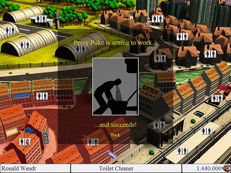 Manage pay toilets across a town in this indie economic simulation. Start with 500,000 euros in seed capital to buy your first site and stock it with basic toilets and paper. Face restless competitors and demanding customers by researching innovations like golden bowls, silk tissue, and seats with cup holders to boost profits and dominate the market. Mix and match components for wild toilet designs, then spy on rivals' setups and unleash saboteurs or rumors to sabotage them. Send authorities after enemy facilities to clear your path to monopoly. Fans of quirky simulation challenges will enjoy outmaneuvering opponents in this crisis-proof business.