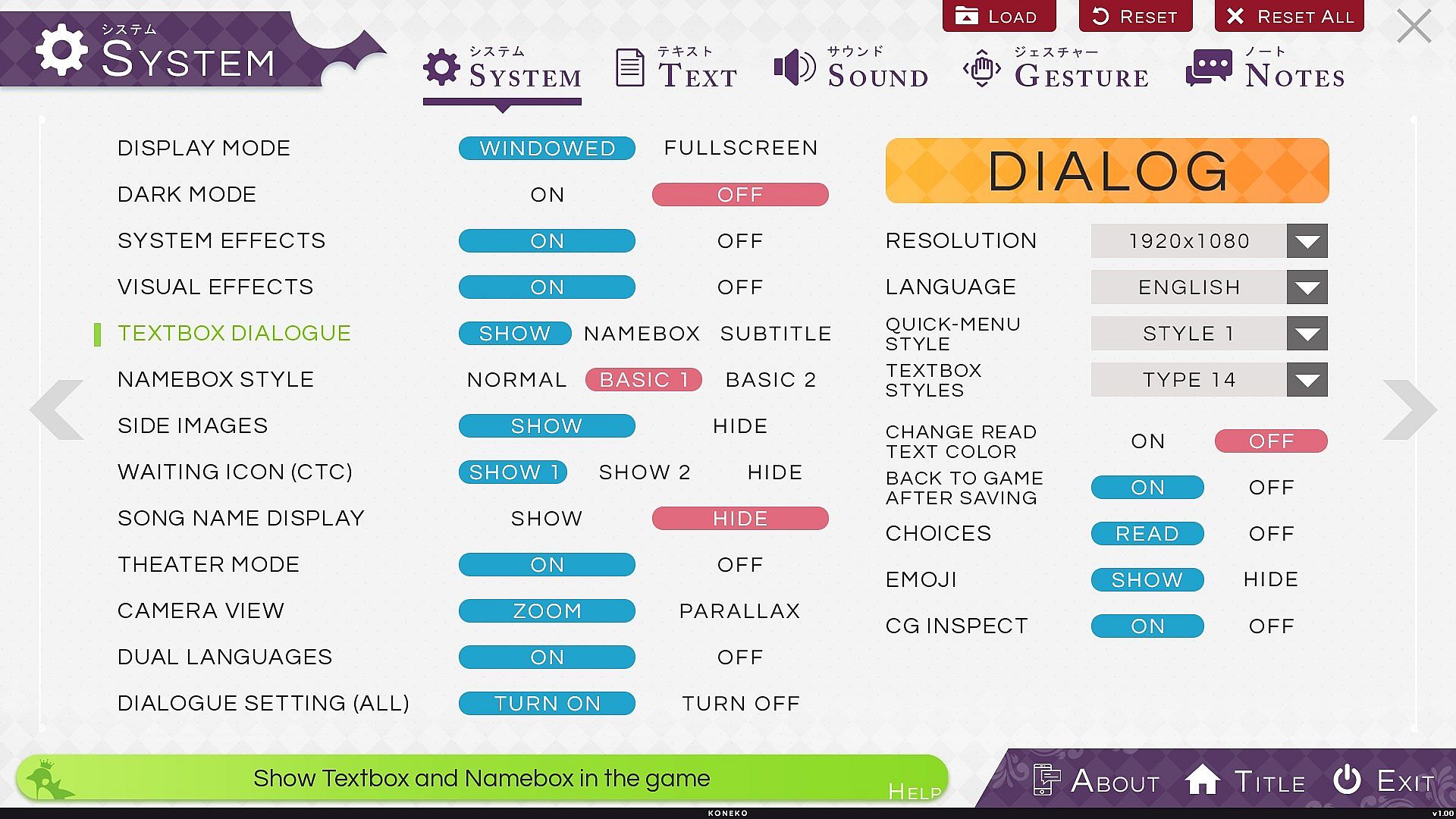 ► CUSTOMIZABLE GAMEPLAY - Through the settings of the game, the player can change almost anything that is displayed, so that the gameplay can be tailored to individual needs. Don't like the CG inspection mode? Switch to the standard reading view. Not a fan of the default textbox appearance? Change the style to a different shape, screen position, and even color.