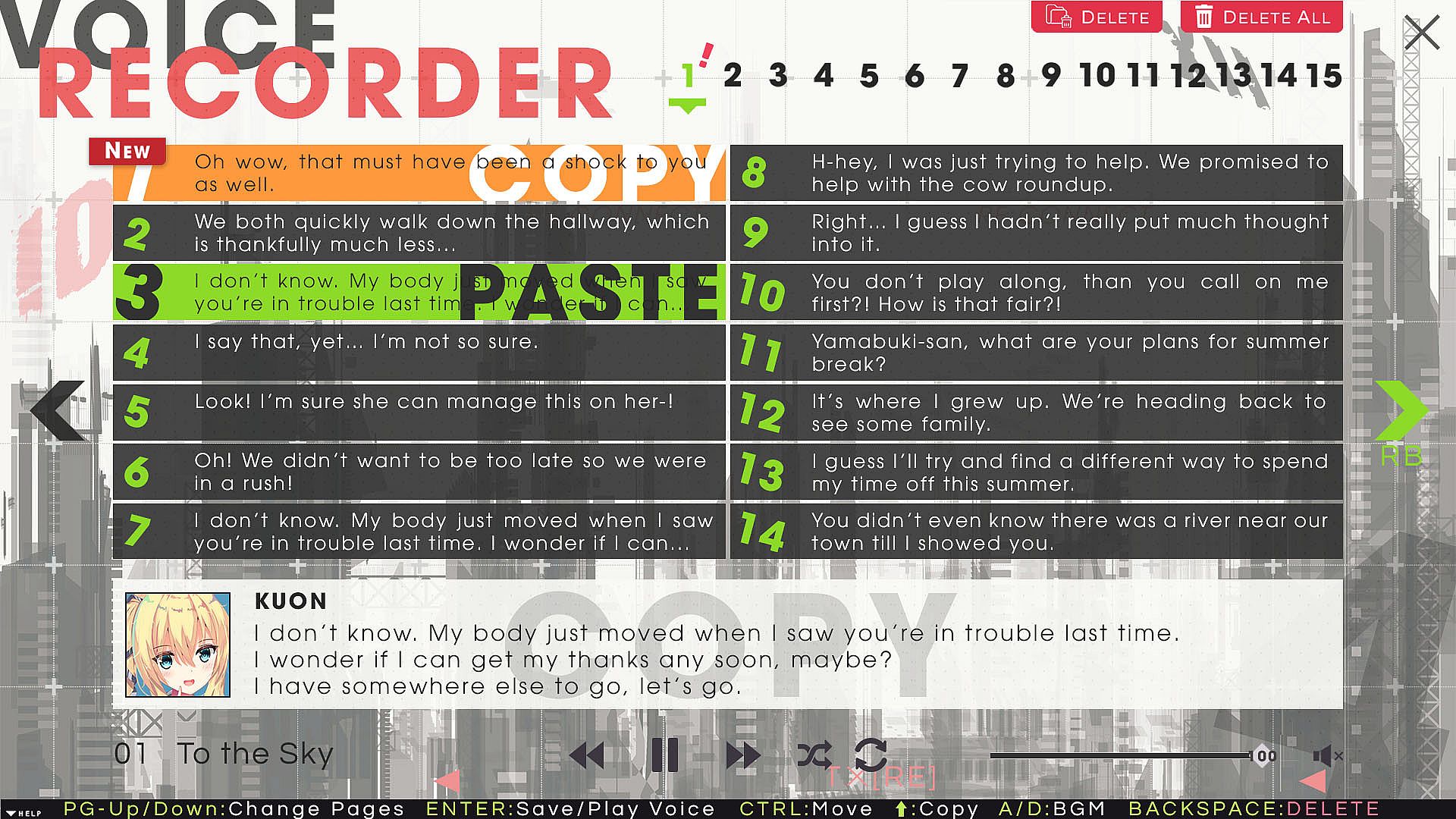 ► EPISODIC WRITING - Unlike traditional visual novels, Tokyo Re:Connect is presented in an episodic format. This makes the story more digestible, and also means that the player can replay from a specific point in time, without having to create extra save slots.