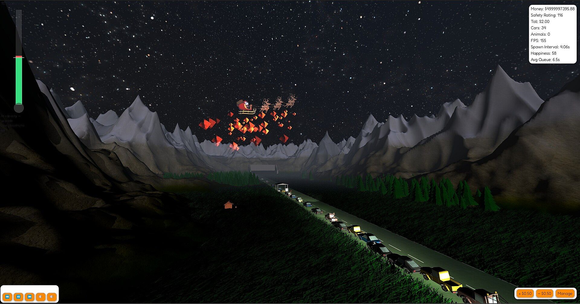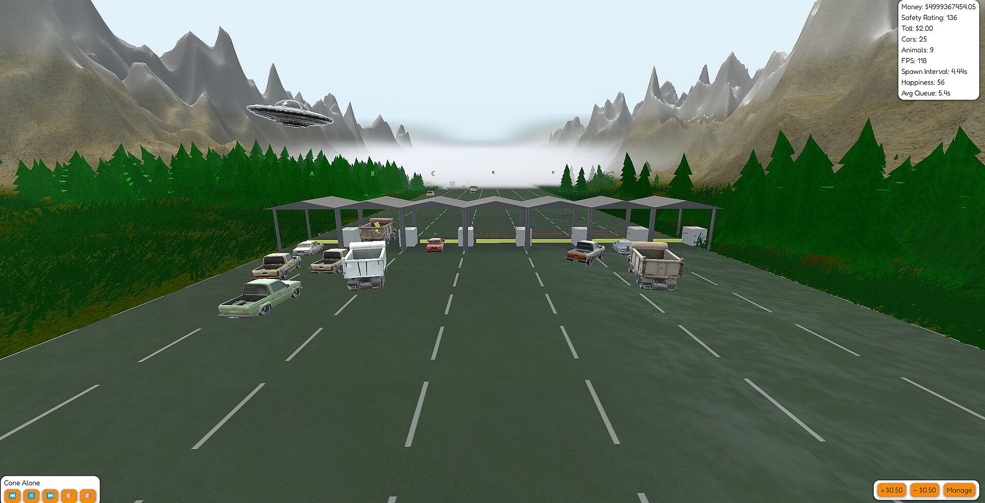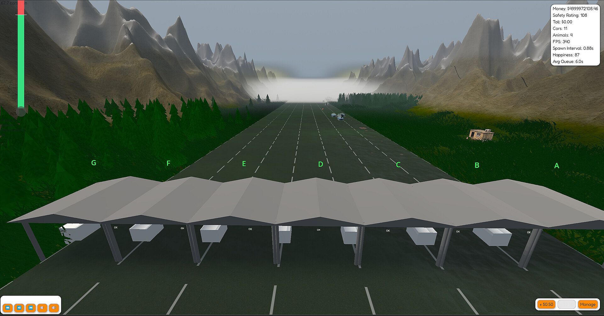 You’re in charge of everything the drivers never think about – staffing booths, keeping the road drivable, dealing with breakdowns, repairing potholes, cleaning up after “incidents”, and trying desperately to keep the cars (mostly) flowing and the money (definitely) flowing.