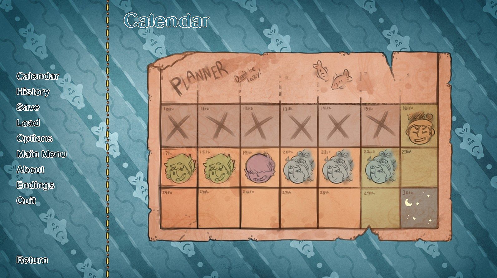 Tomai only has 15 days before the annual Night Festival, a night which symbolizes his last vacation before starting his new job as a leader of town. Tomai has never been sure of anything except his love of fishing, so there's much to decide before his time as a free bachelor is up!