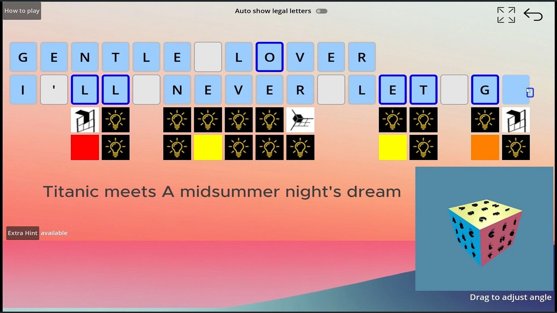 An original design hint cube ,providing letter position and color information.