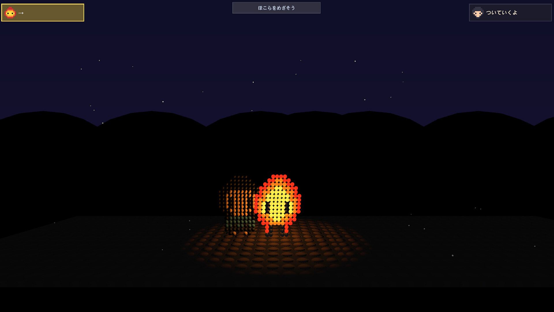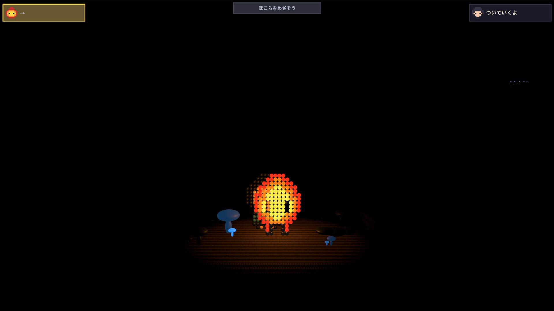 The flame cannot speak, but the girl stays close to its gentle light. Together, they begin their journey through the night forest, searching for the shrine.