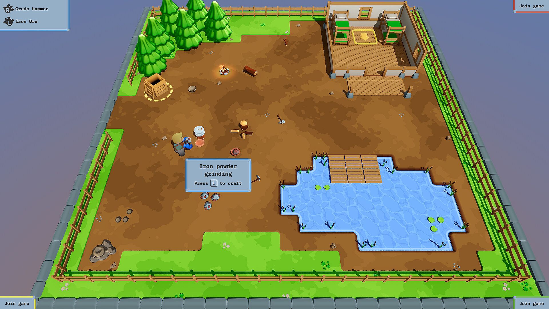 Create anything from handy camp tools to grand community projects with an intuitive two-hands system. Whether you venture solo or team up with friends who can drop in and out at any moment, there’s always a task waiting for you.
