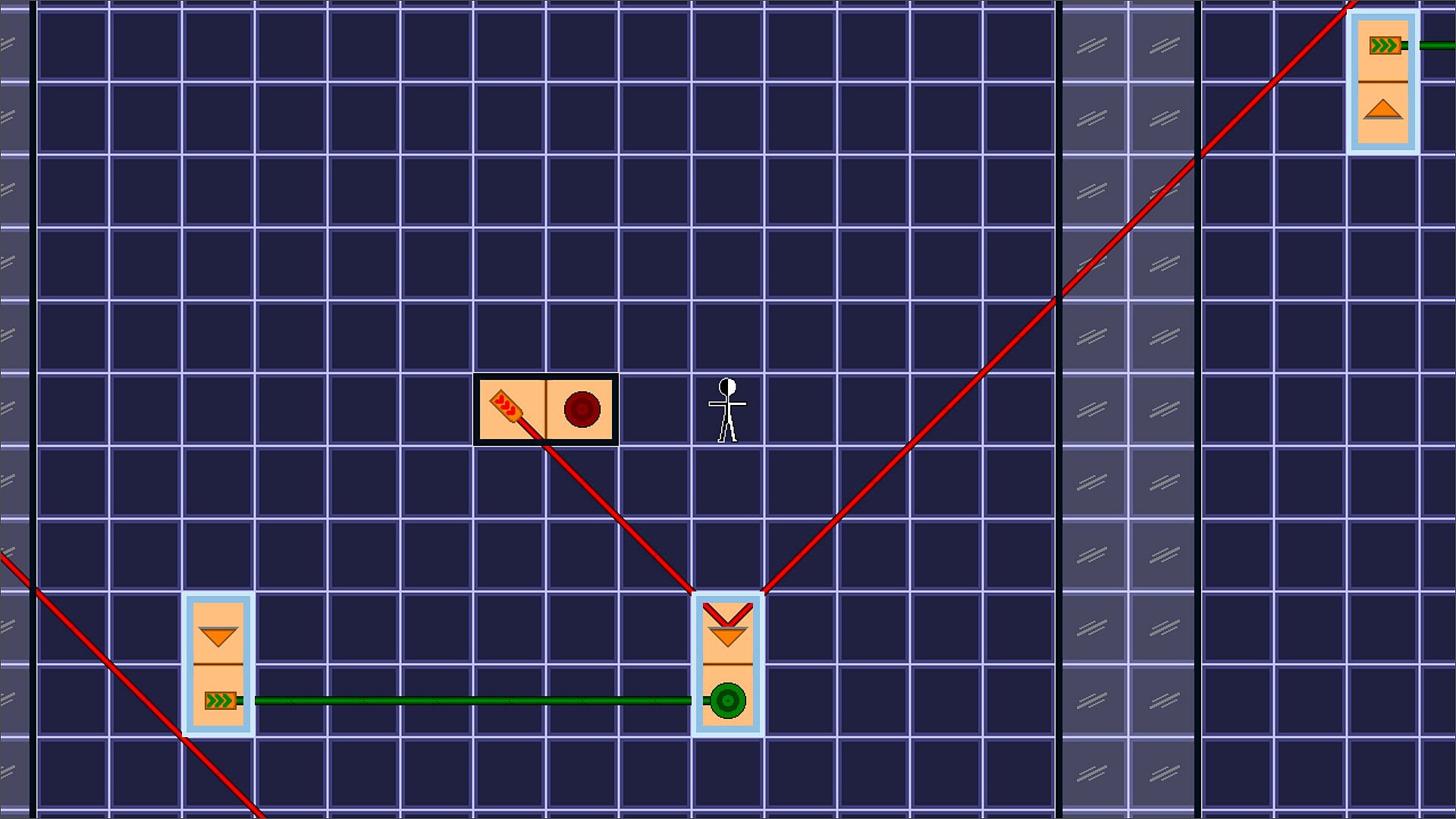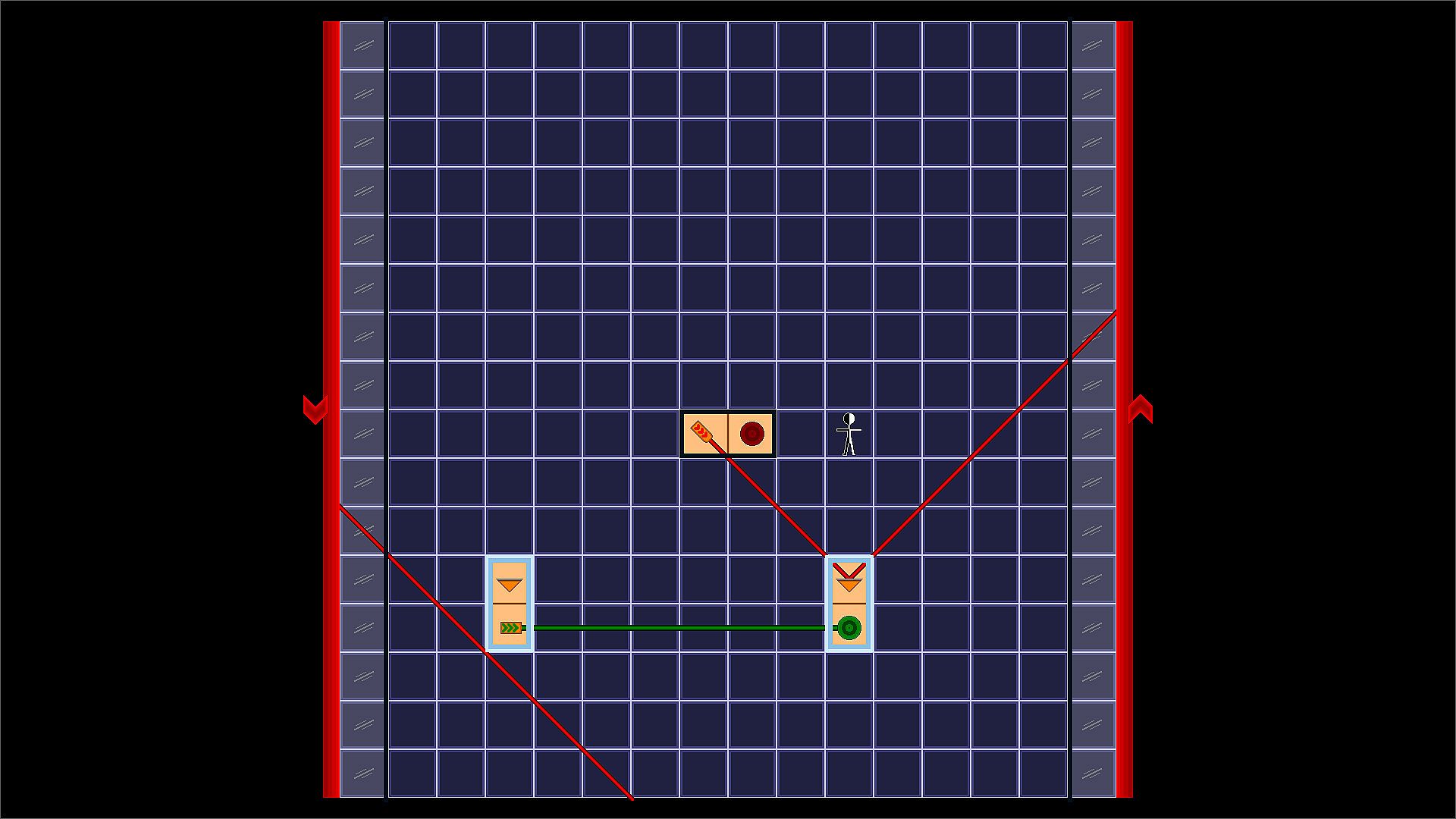 Topobeam is a puzzle game about redirecting lasers in different two-dimensional manifolds.  The levels operate on a grid system, but pay attention to how the sides of the grid are glued together as players, objects, and lasers can cross over these gluings to different parts of the level.