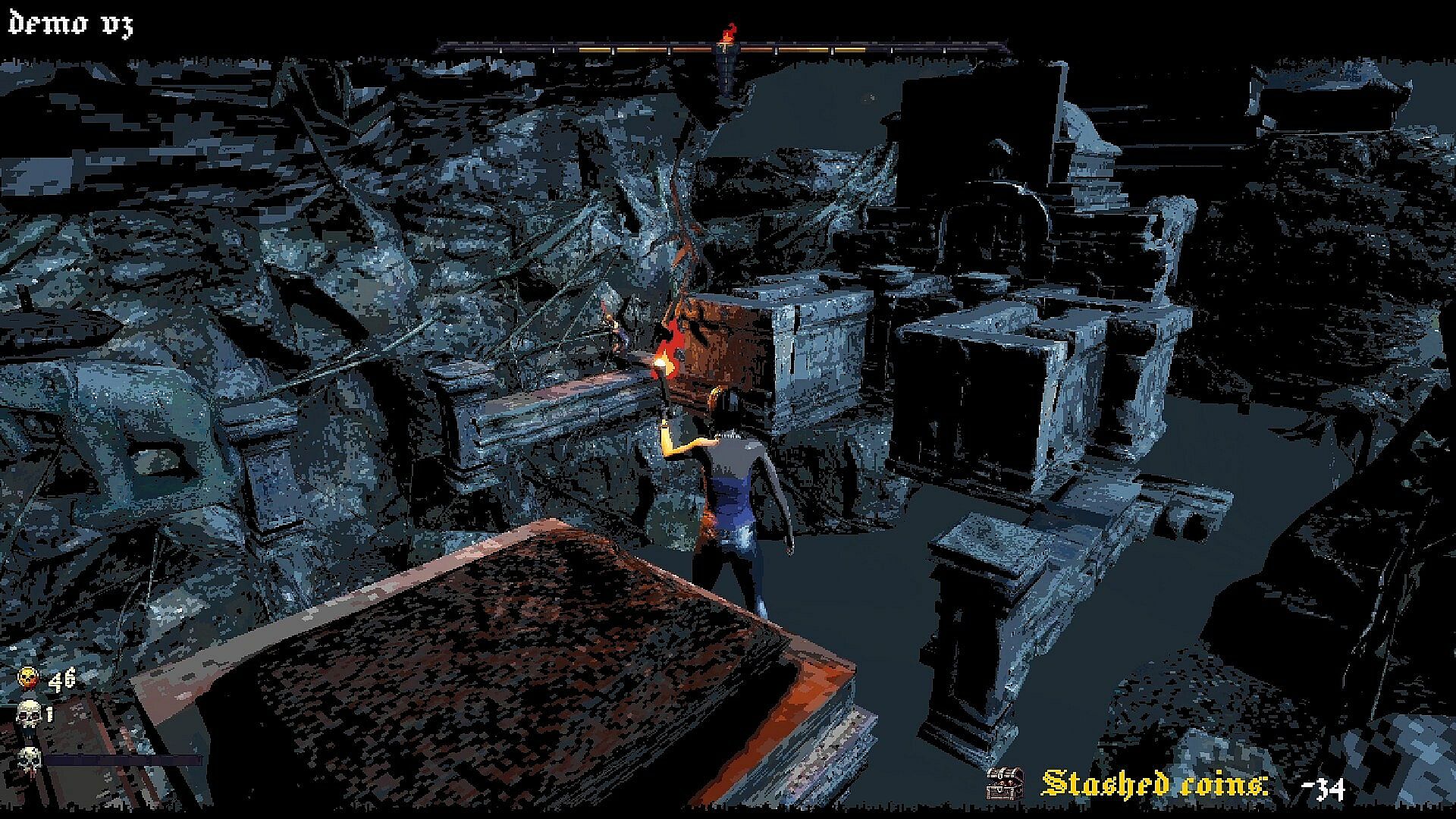 Retro Visuals – Featuring sharp pixel textures and low-poly 3D models, the visuals pay homage to classic platformers while embracing a dark and eerie tone.