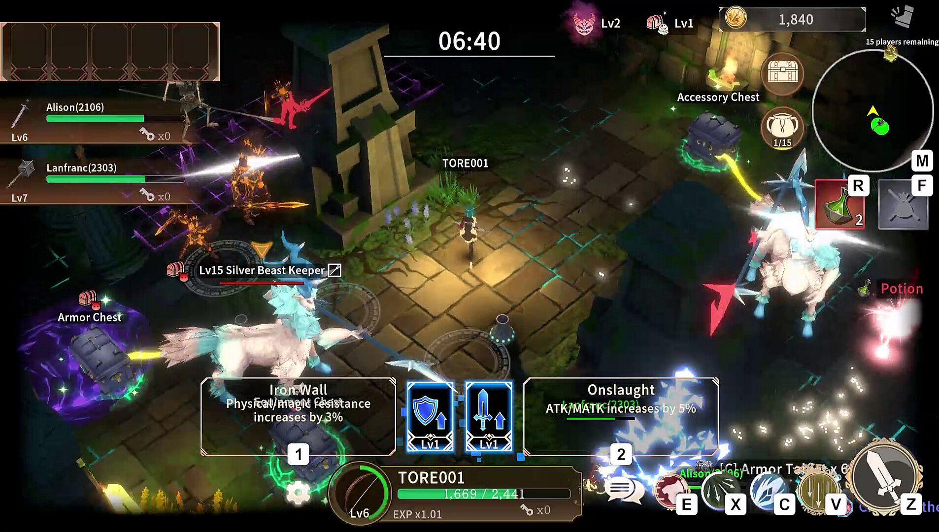 Dungeons are filled with various treasure chests and numerous monsters guarding valuable loot. Defeating monsters grants experience points, allowing you to level up. Work together with your allies to defeat monsters and safely open treasure chests.
