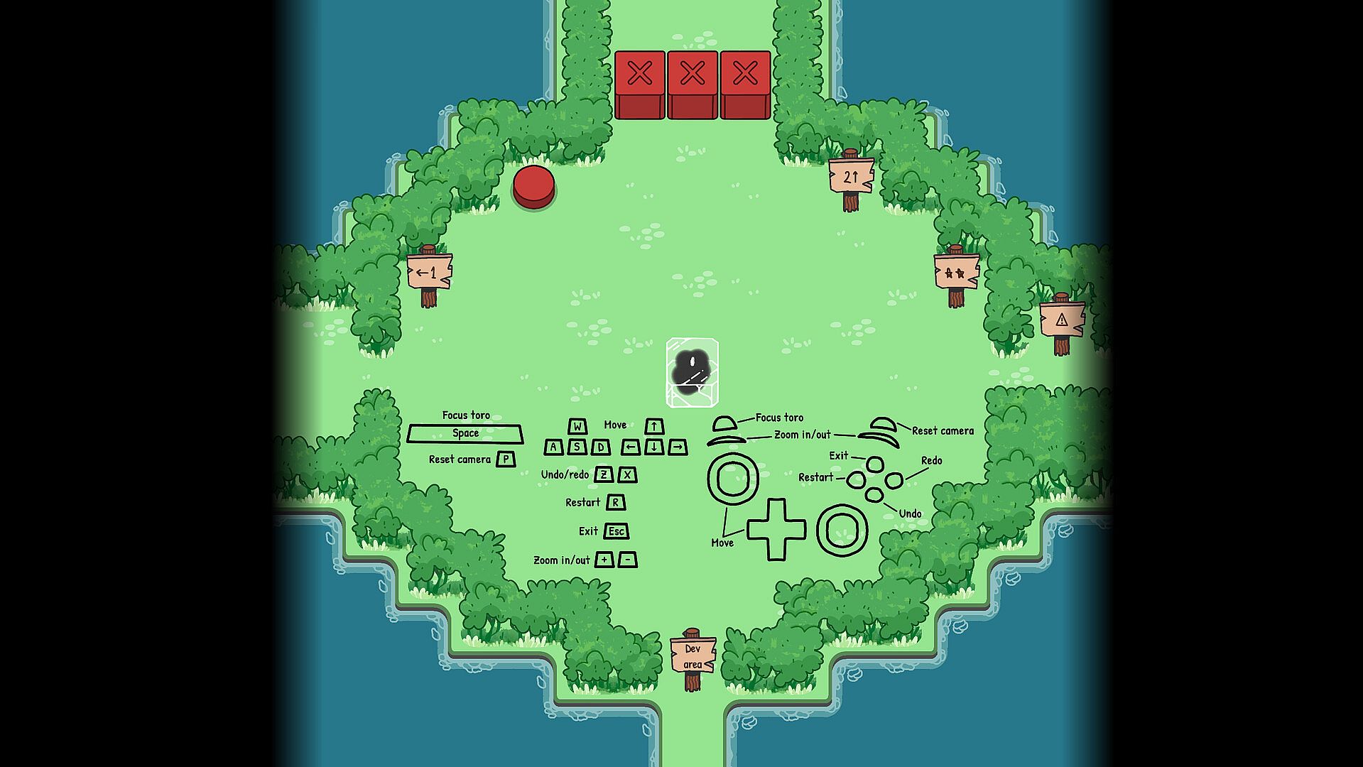 This is the starting area, which contains simple toroidal puzzles with blocks, buttons, and gates.
