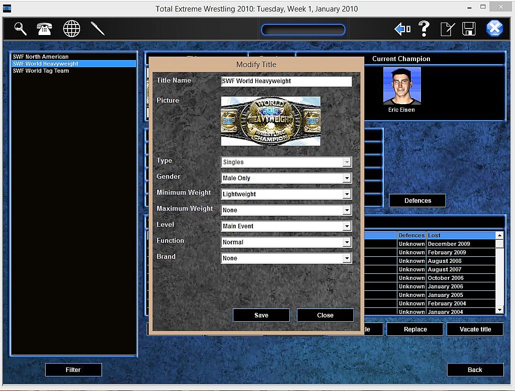 • All title belts have a prestige value, meaning you can try to raise certain championships in the eyes of the fans.