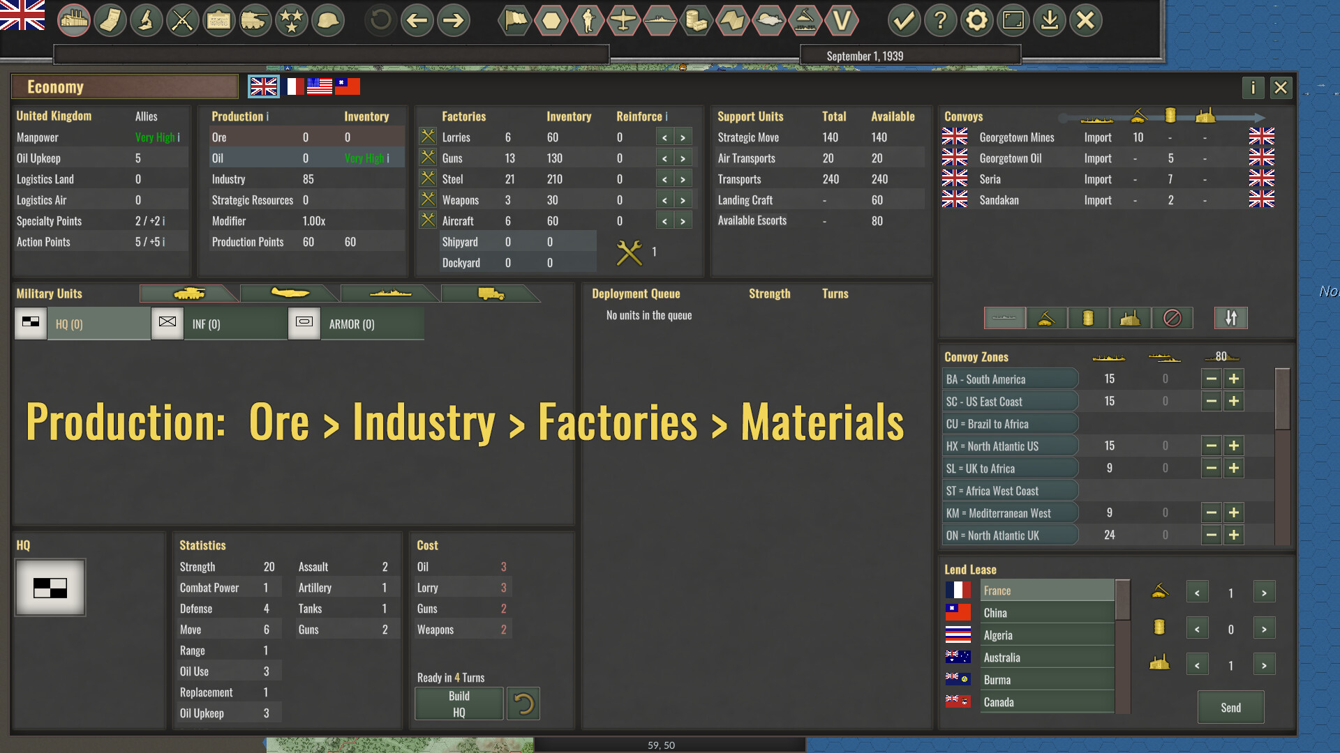 • Unikalny system heksów/obszarów morskich dla uproszczonego systemu walki morskiej polegającego na formacjach floty i atrybutach statków z różnymi misjami