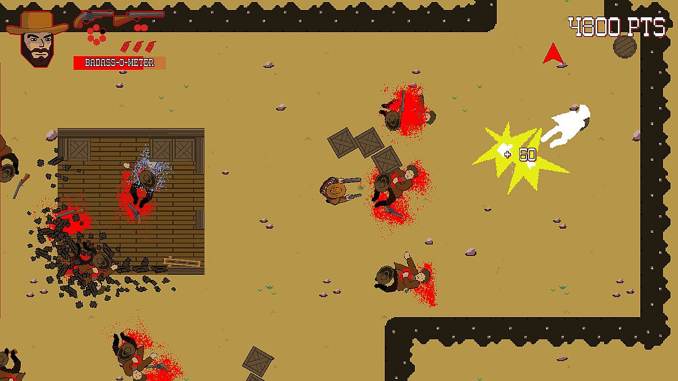 You're able to shot down your enemies with your handguns: a shiny S&W model 3 Schofield and a 10 gauge shotgun. You can also blow enemies to hell and destroy walls, doors and other obstacles with dynamite. You can shot the dynamite to explode it before the wick time.