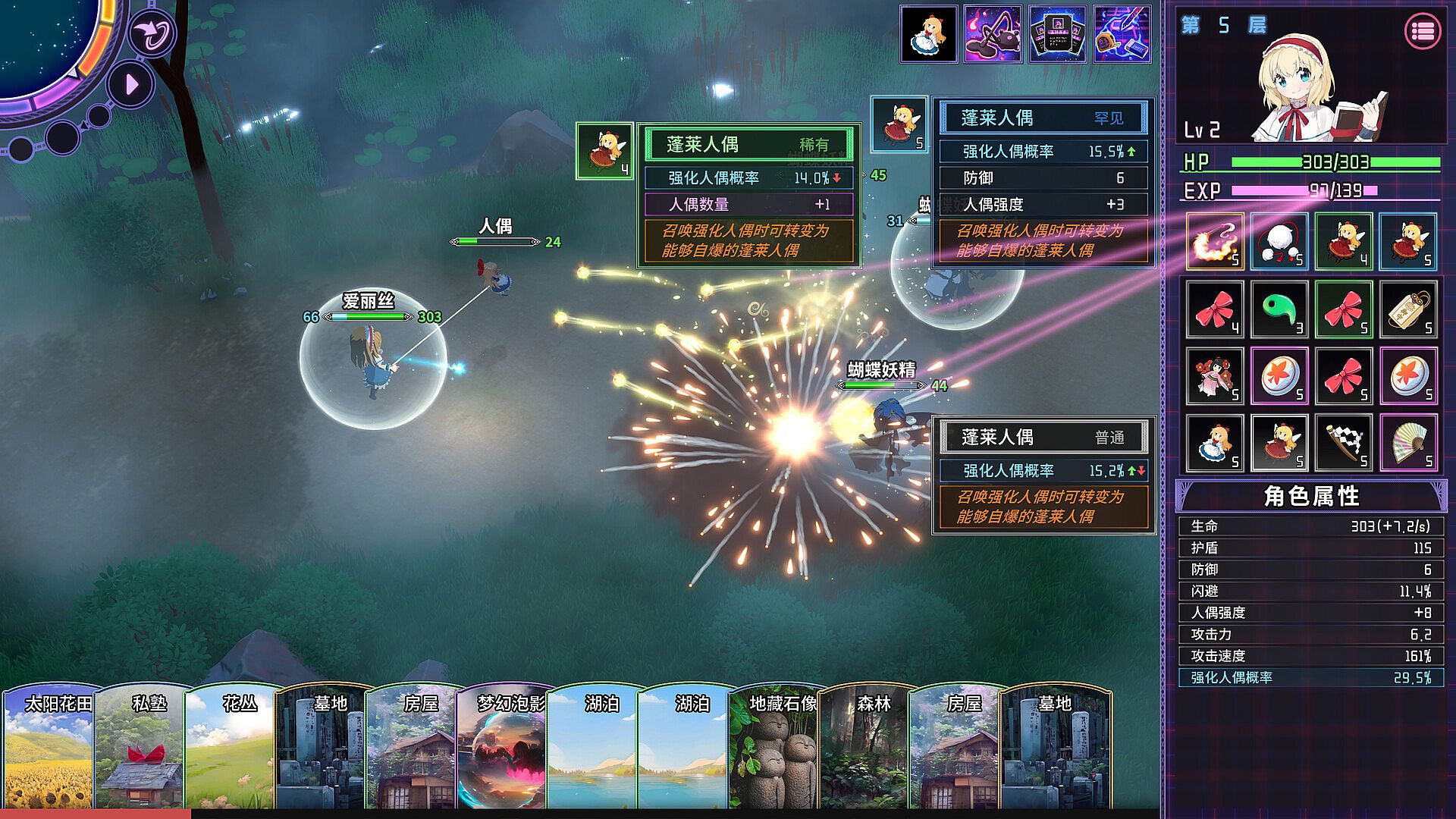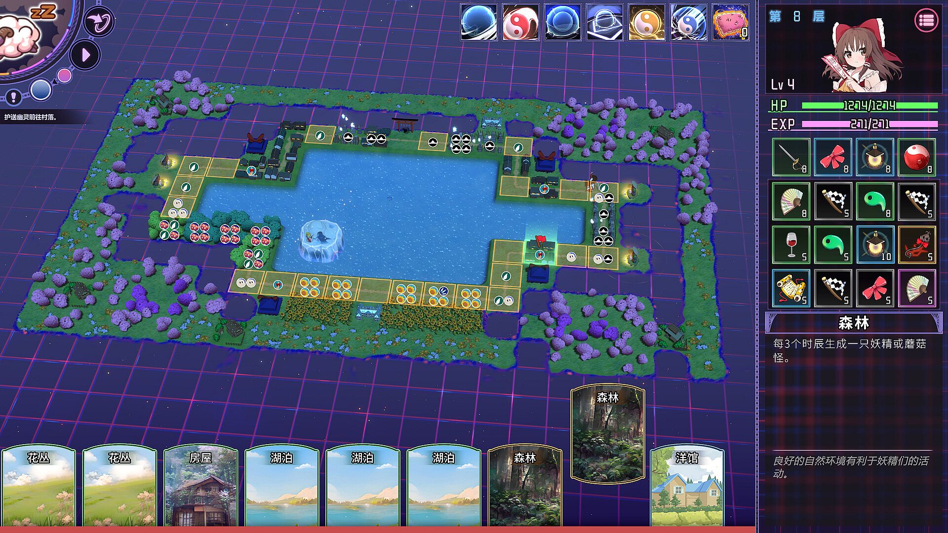 Dreamland Constructions: Use building cards condensed from scenes all over Gensokyo and freely place them in the dream's grid to provide attributes or enemies for the main character. Related buildings will also link together, creating rich scenery and providing hidden effects.