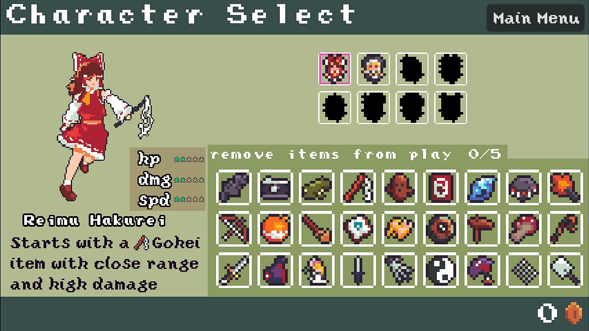- 5 different spell cards for full screen youkai extermination!