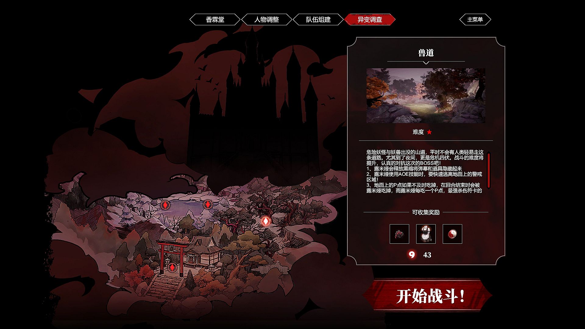 We design a map ranging from Hakurei Shrine to Scarlet Devil Mansion.What’s more, you will see some special landmarks on this map, they correspond to battlefields in official games.Yes, those familiar opponents will challenge you when you exploring the map. Here is the explanation in detail about this system:
