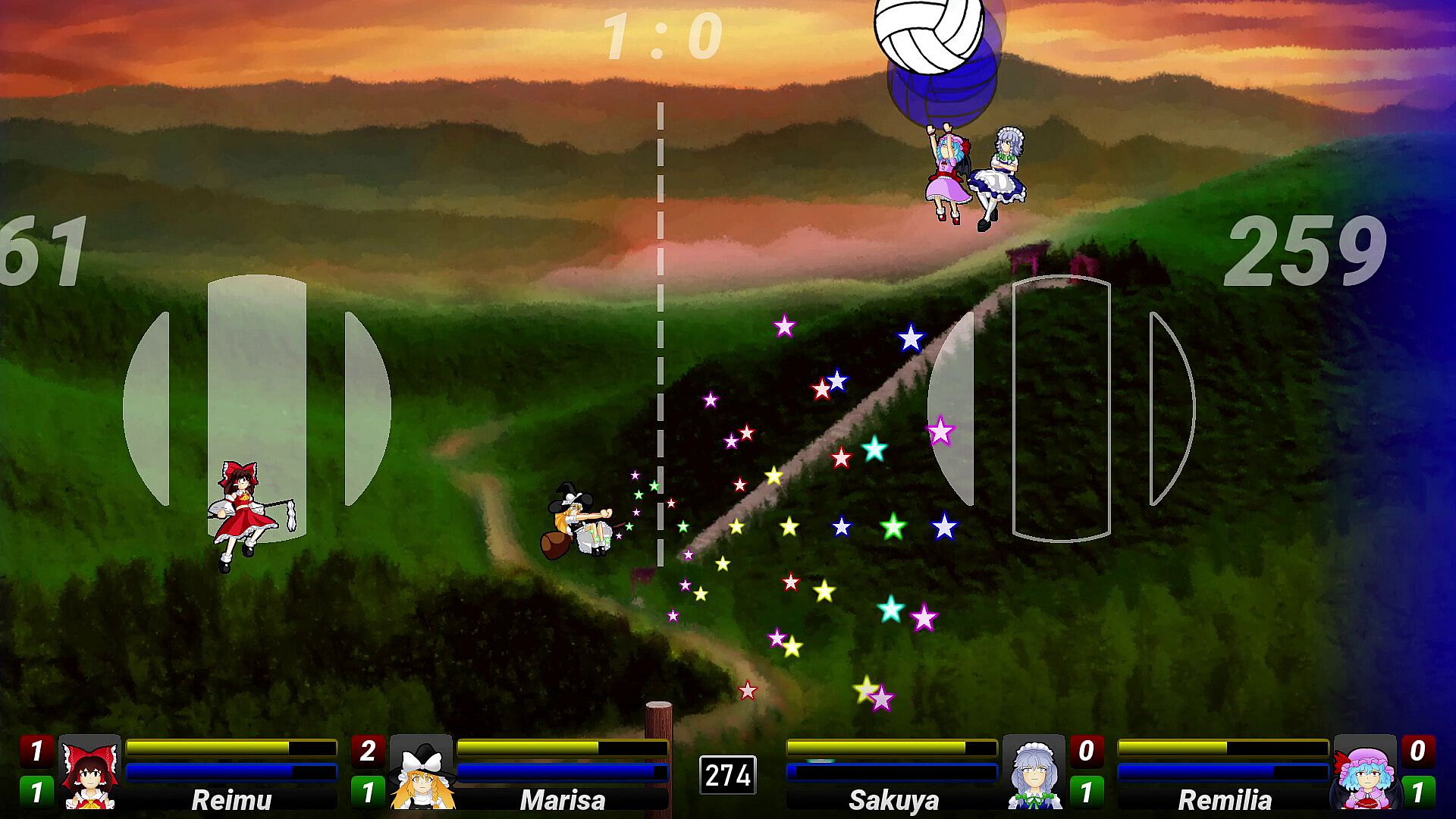 The skies are your court as you will pick a team of two of your favorite Touhou characters. They will not only attempt to keep the ball in play but also avoid the bullets coming your way, all while dishing out your own attacks!