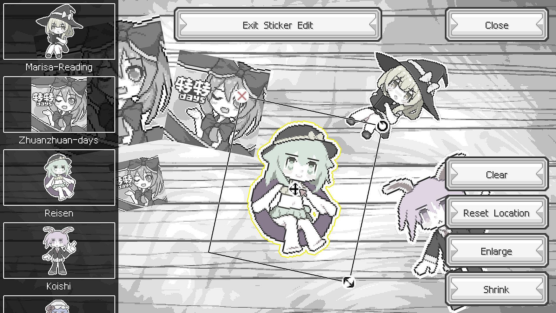 Customize the background! Decorate it with your favorite Touhou Character's stickers!