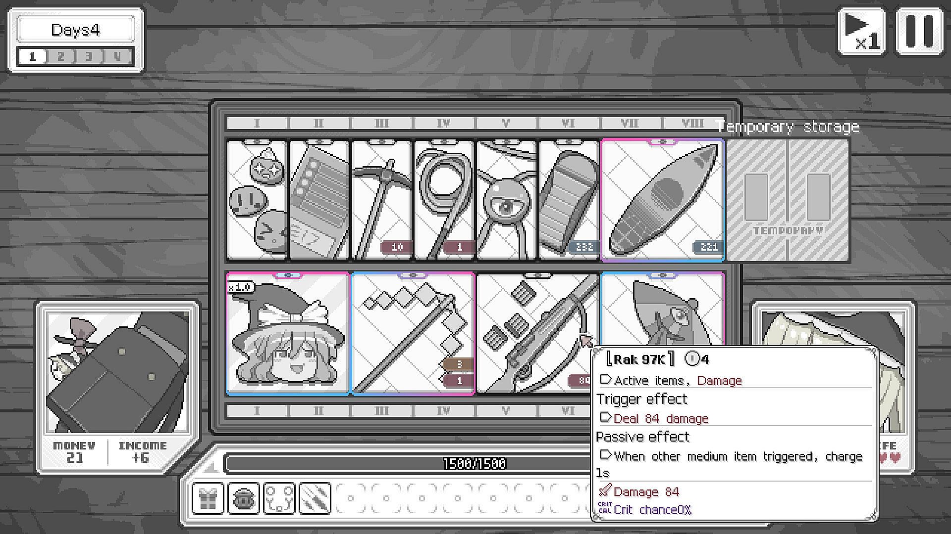 At the end of each day, you will visit the night market and meet other Touhou charaters who specialize in different weapons (we won't spoil who they are, but let's just say you might run into Koishi, Remilia or Reisen). Choose who you want to talk to, then challenge and defeat them!