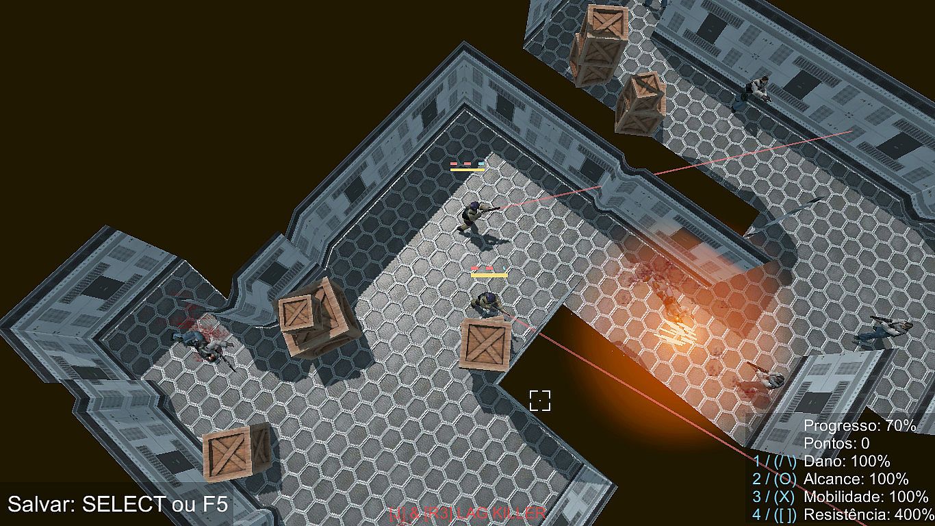 Toupei55 is an arcade top-down tactical cooperative tactical shooter experience, where you play as US Navy Seals fighting off a gang of brazilian terrorists that speak Russian, clearing out procedurally generated tile-based levels as you progress through levels and upgrade your character. Damage, reload speed and range affect both you and your enemies, while resistance affects only yourself and your teammates - giving you ample opportunity to customize the game's difficulty to your personal preference. The game supports up to 5 players coop - 4 controllers and one KB/M. You can play it solo as well if you'd like, though it's not recommended.