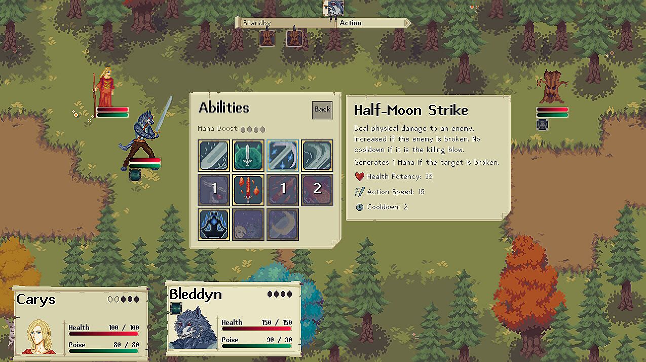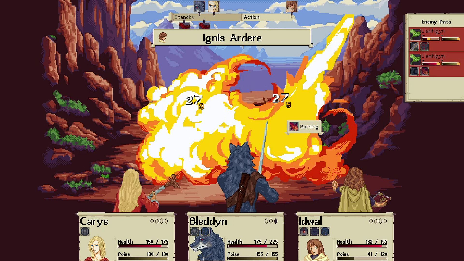 With a combat system partially inspired by the Grandia and Octopath Traveler, BREAK your enemies' poise, removing their action and making them vulnerable to high damage. There are no random encounters or forced grinding, the focus is instead on your tactics and how you have chosen to develop the characters.