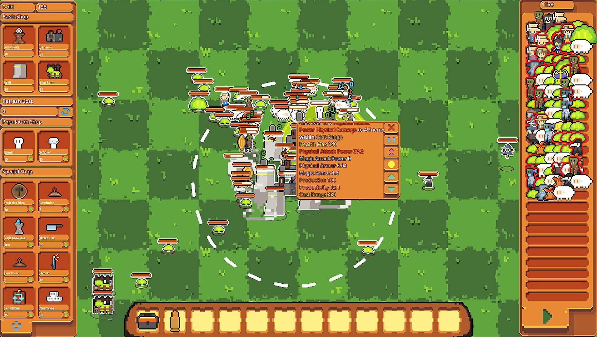 After defeating enemies and obtaining gold coins, you can purchase props with unique features, population, or defense towers in the shop to strengthen yourself.
