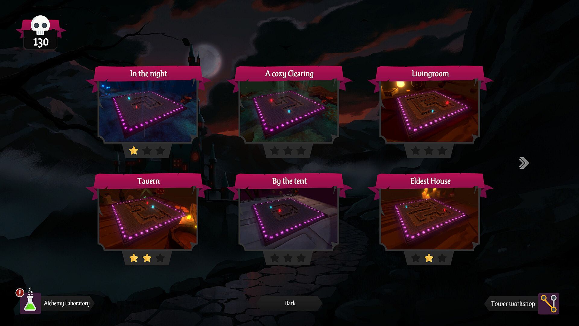 In Tower Alchemist, you can choose from eight different towers, including the classic arrow tower, the destructive cannon tower, and magical towers like fire, water, and life.