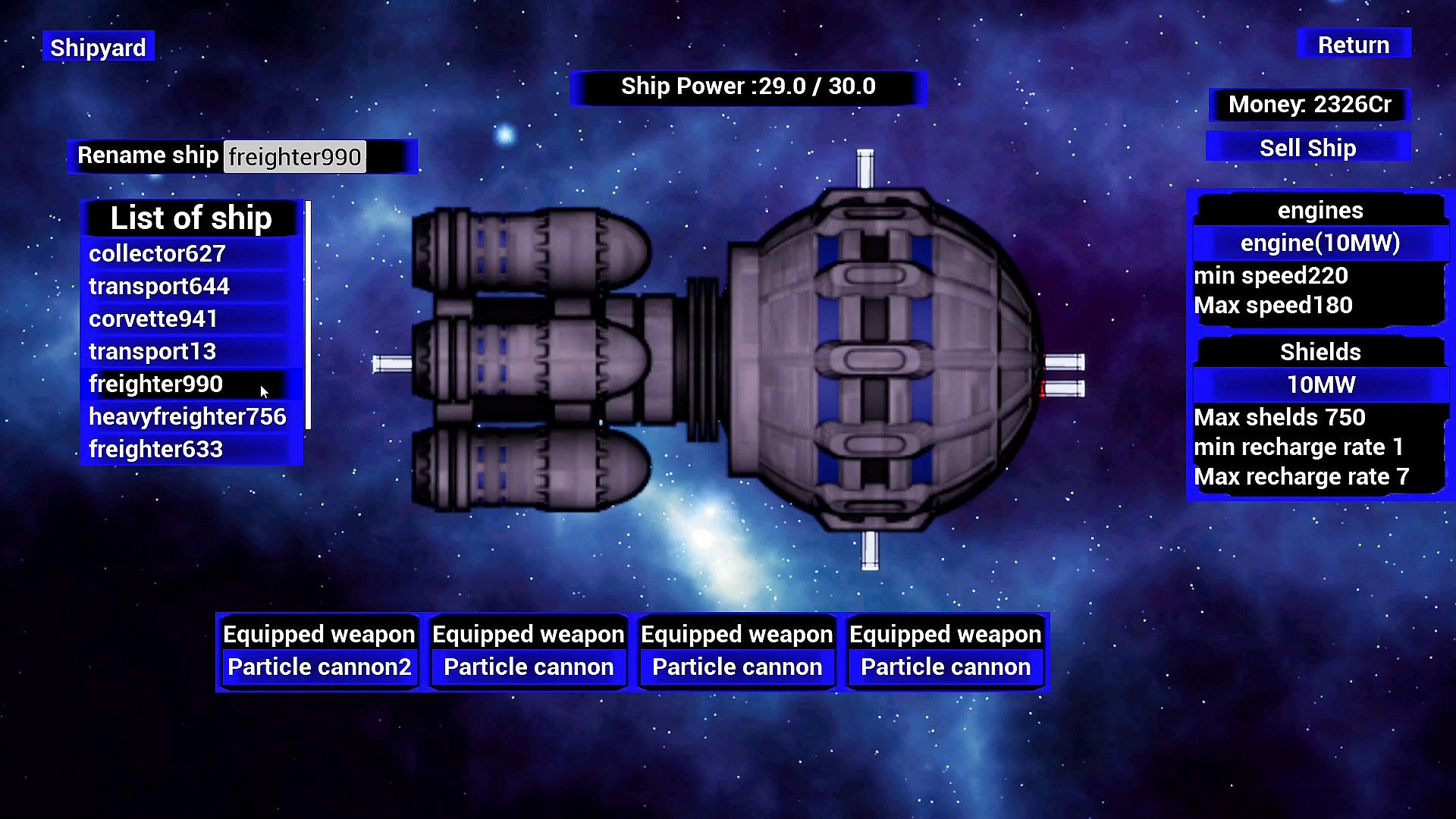• Expand your fleet (7 different ships) and reoutfit the ships with better weapons (8 different weapons) and shields