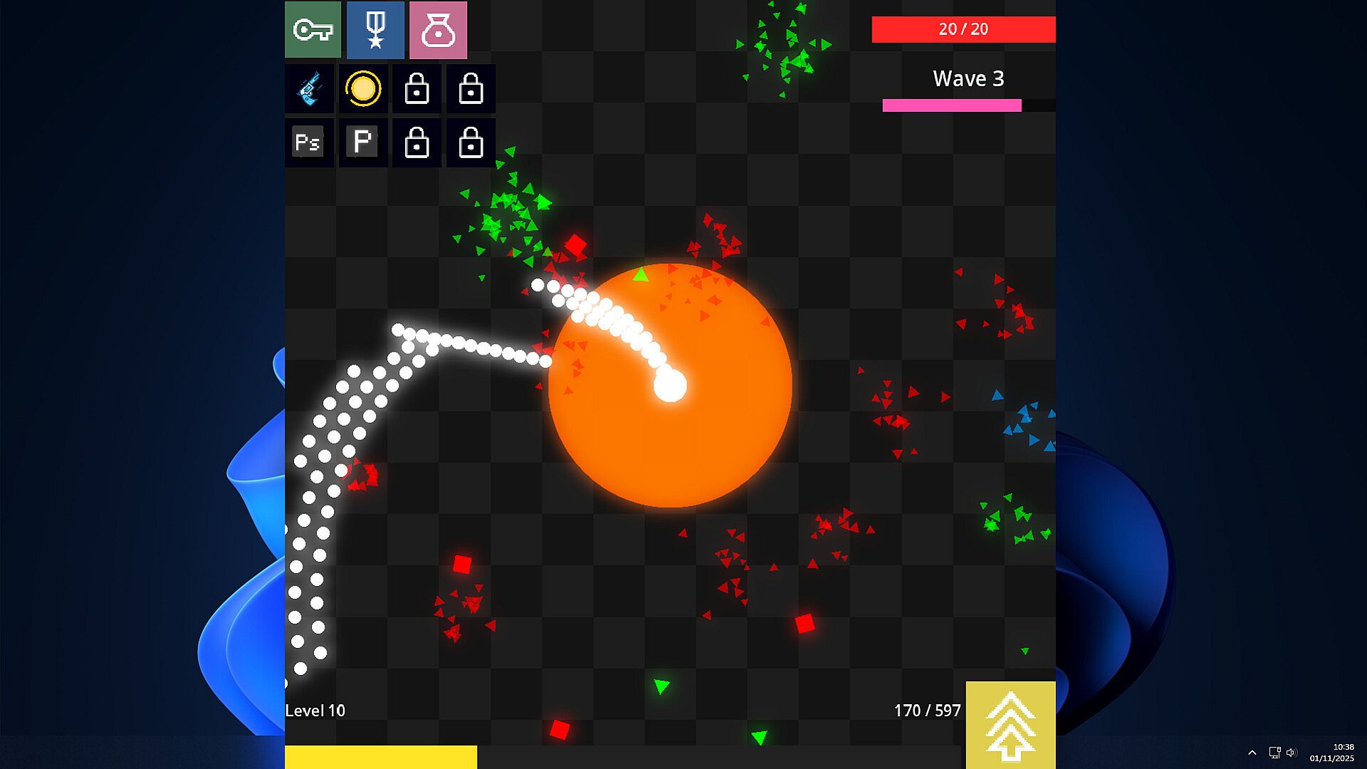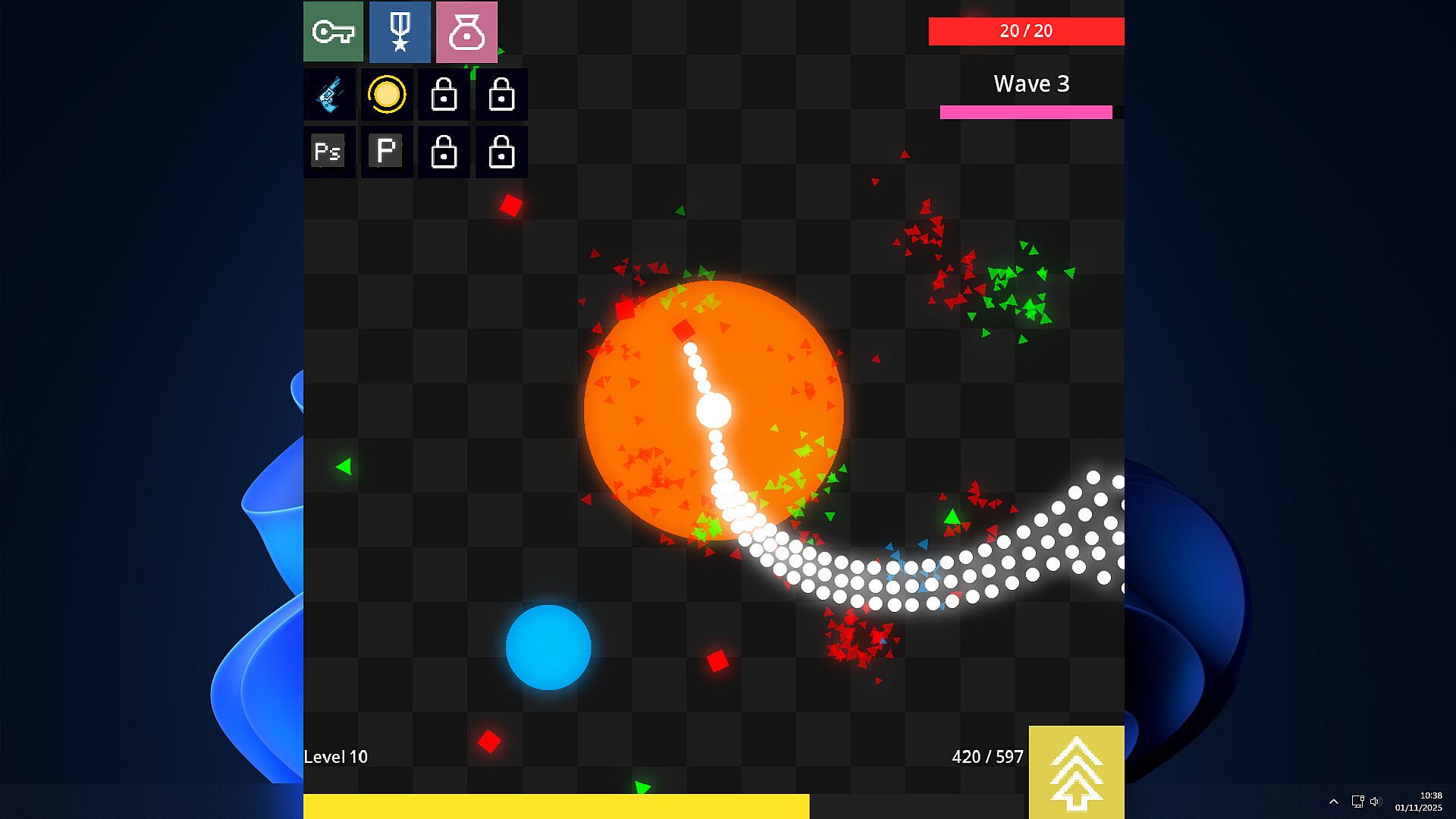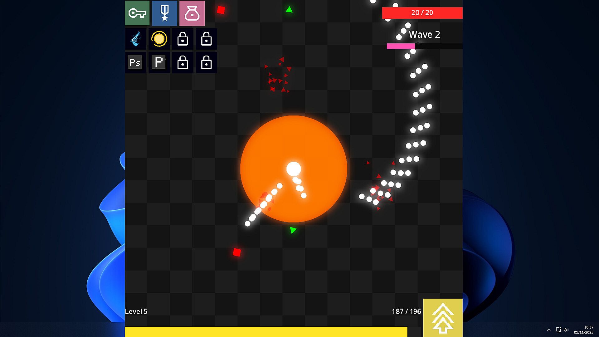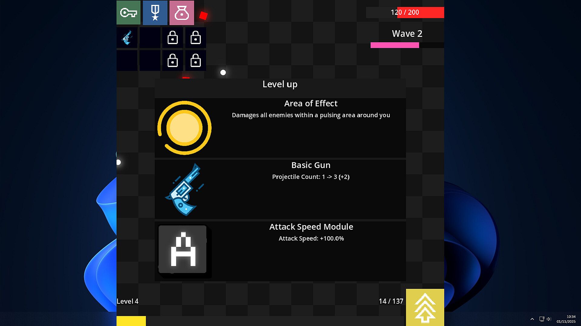 Destroy enemies, earn XP, and level up to unlock powerful upgrades! Each level gives you new weapons or modules to choose from, evolve your build to create crazy synergies. Every run is unique, every combo more chaotic than the last.