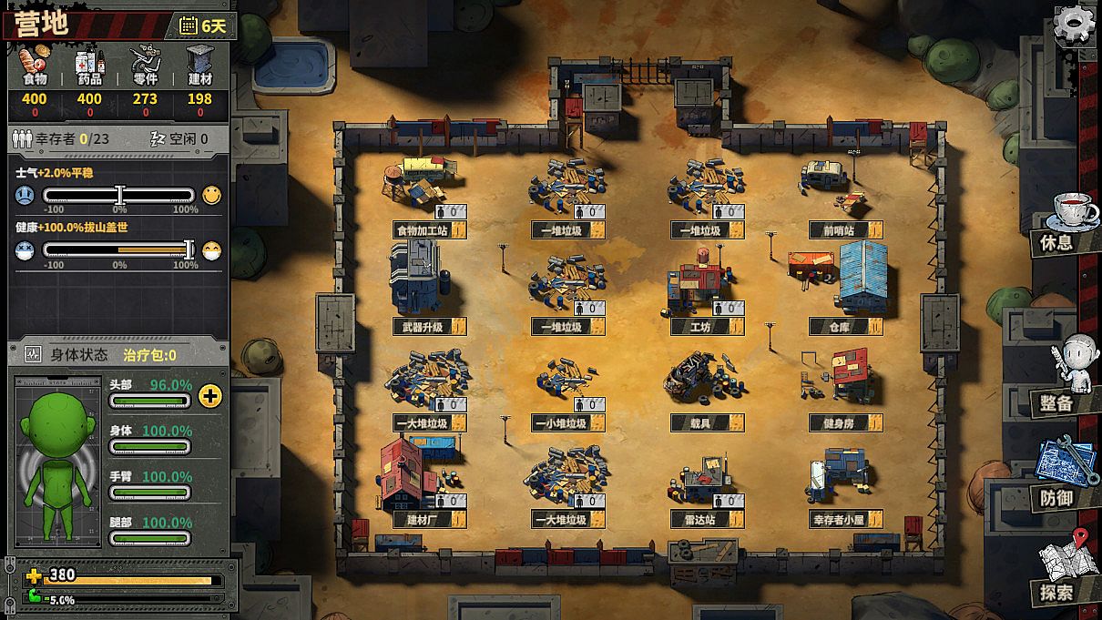 - as a leader, you also need to assign tasks to the survivors of your camp: resource production, cleaning up camp garbage, searching for discovery points, exploring supplies, researching defense towers, etc.