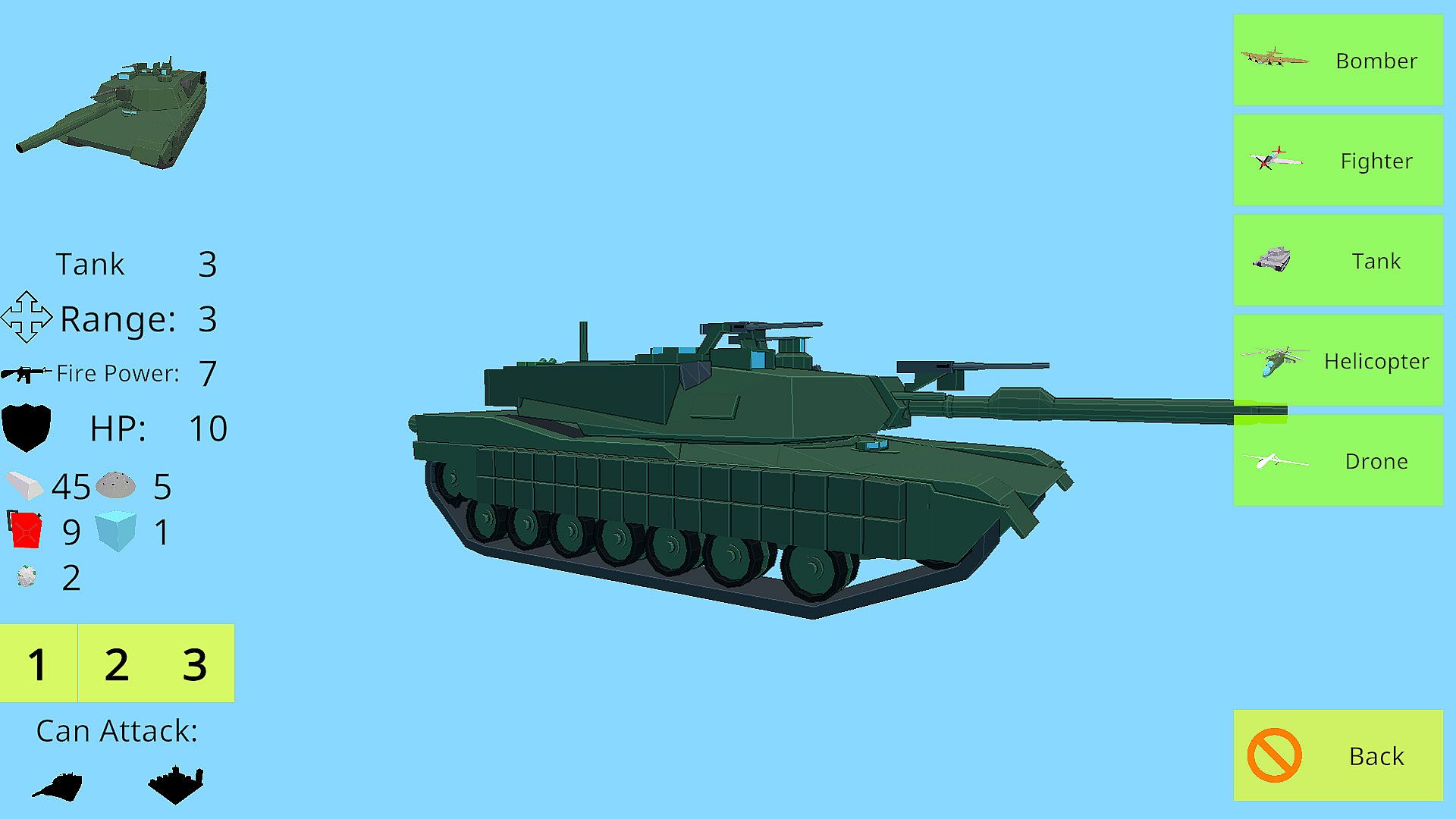 Each of them can destroy specific types of units. For example, a tank cannot shoot down a bomber, but a bomber can successfully bomb a tank.