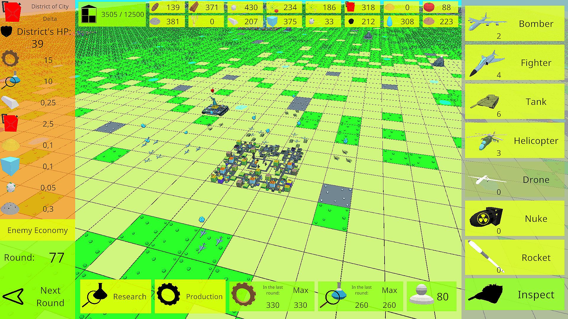 Tracktopia is a strategy game with city-building elements, where your city moves on tracks and serves as a super powerful unit. The goal of the game is to destroy the enemy nation. Boost your city's production to create more units. Don’t forget to invest in research as well, enabling you to develop more efficient buildings and stronger units. Achieve this by constructing districts in Tracktopia—there are 10 different types available.