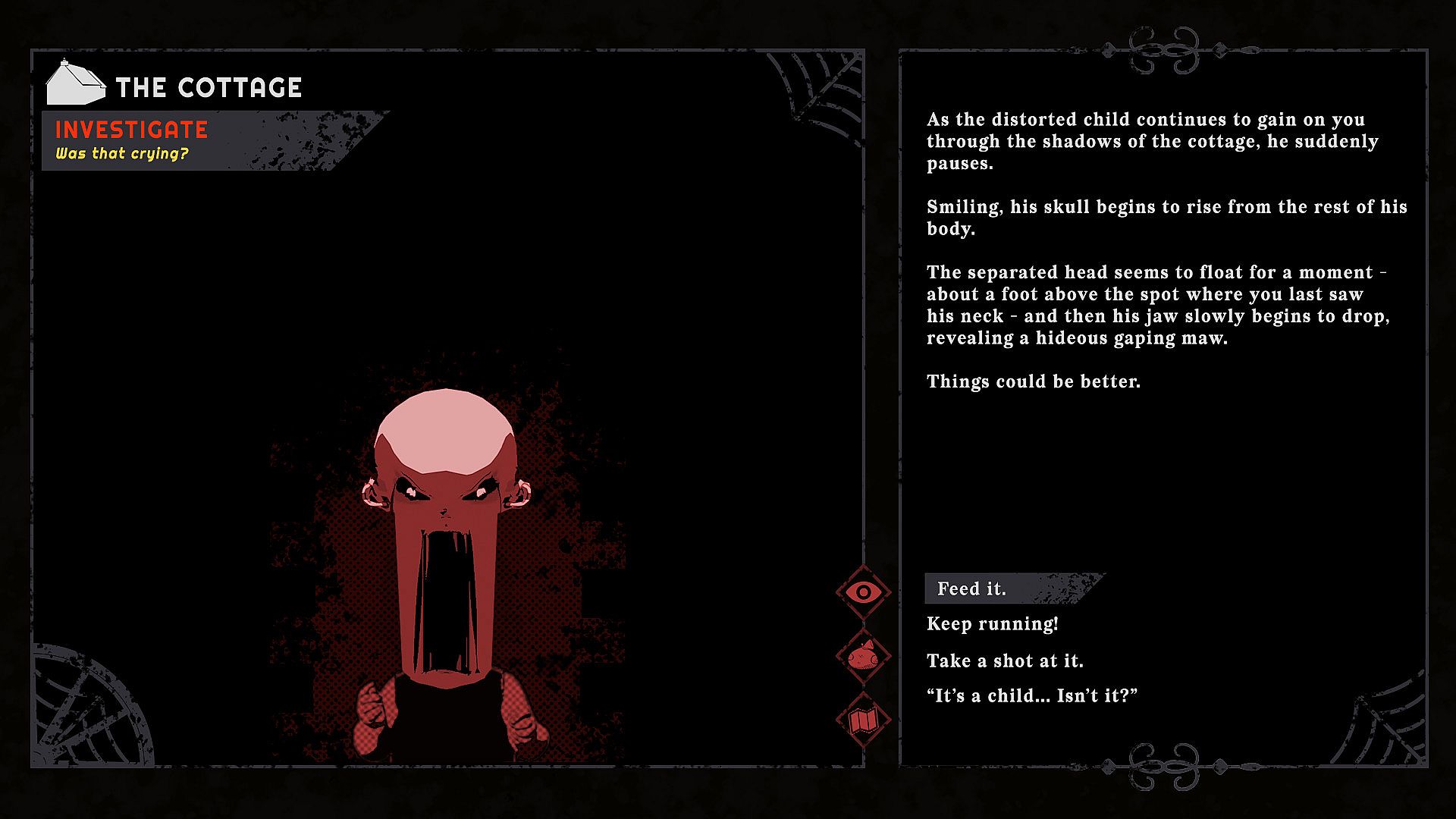 Uncover an unforgiving branching narrative, as you travel in an Oregon Trail style of gameplay, filled with unnerving encounters and unlikely companions. Hideous dangers lurk around every corner and your choices will determine who you are, where you go, what you do, who you meet, and ultimately how your story ends.
