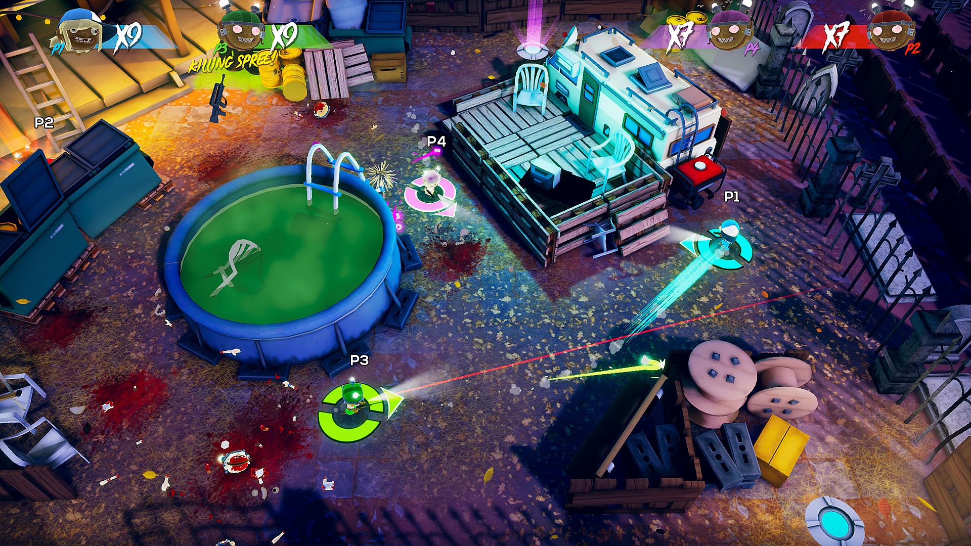 Don't forget to bring dad's shotgun because today's game is Trailer Trashers. A violently funny twin stick couch party game that let's you relive a shortened childhood. You can play with up to four friends. If you don't have anyone to play with, you can always add bots to fill up the slots. They are ruthless, but don't be discouraged, your friends might be easier targets. And with "Steam Remote Play Together" you can always practice online!