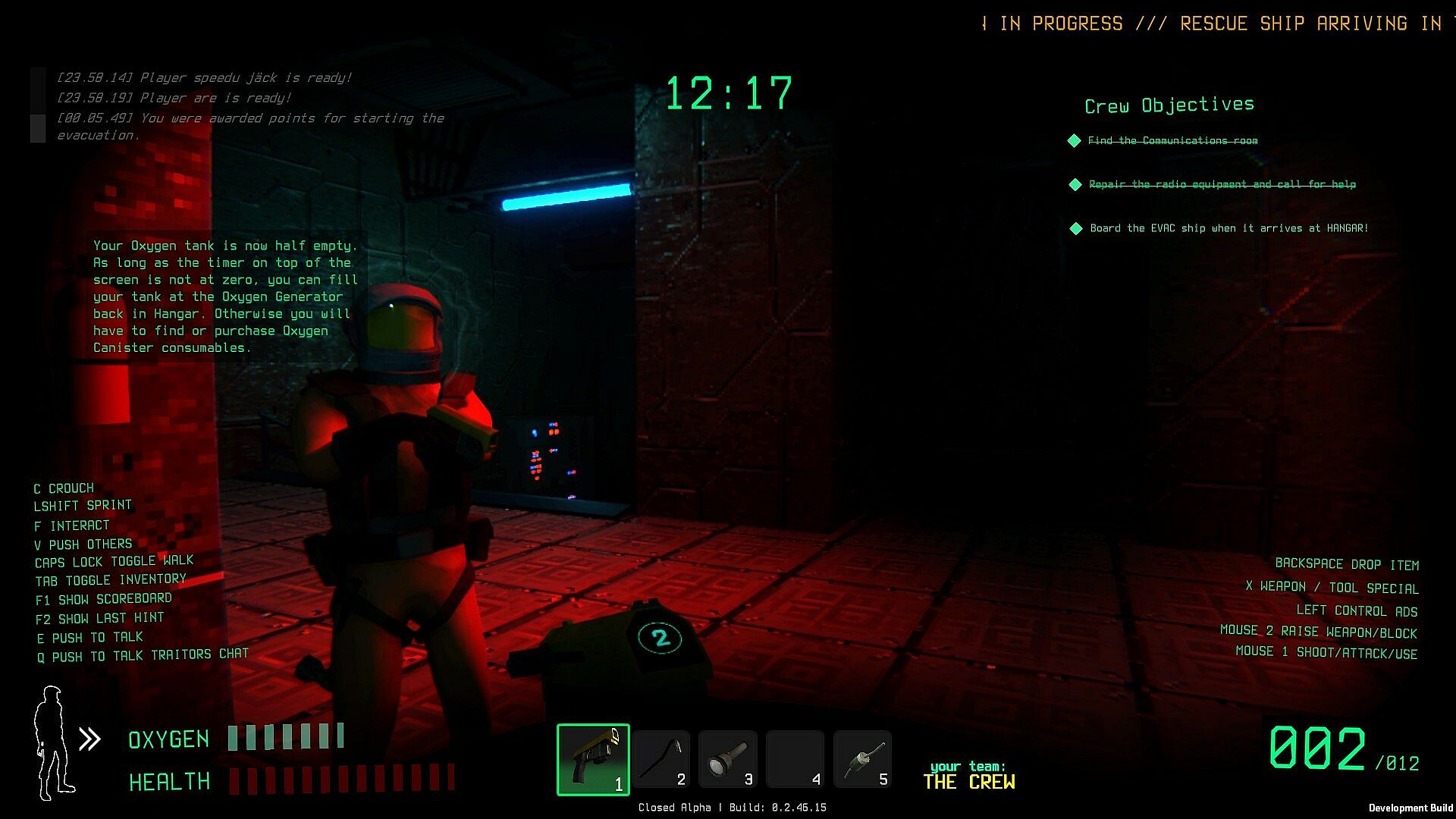• Refill your personal oxygen tank at the Oxygen Generator in hangar. When the generator eventually runs out of power, you will have to find more oxygen to stay alive.