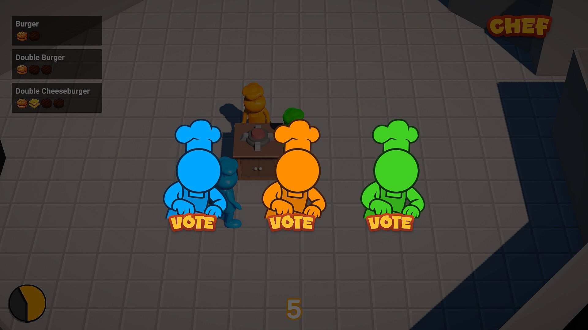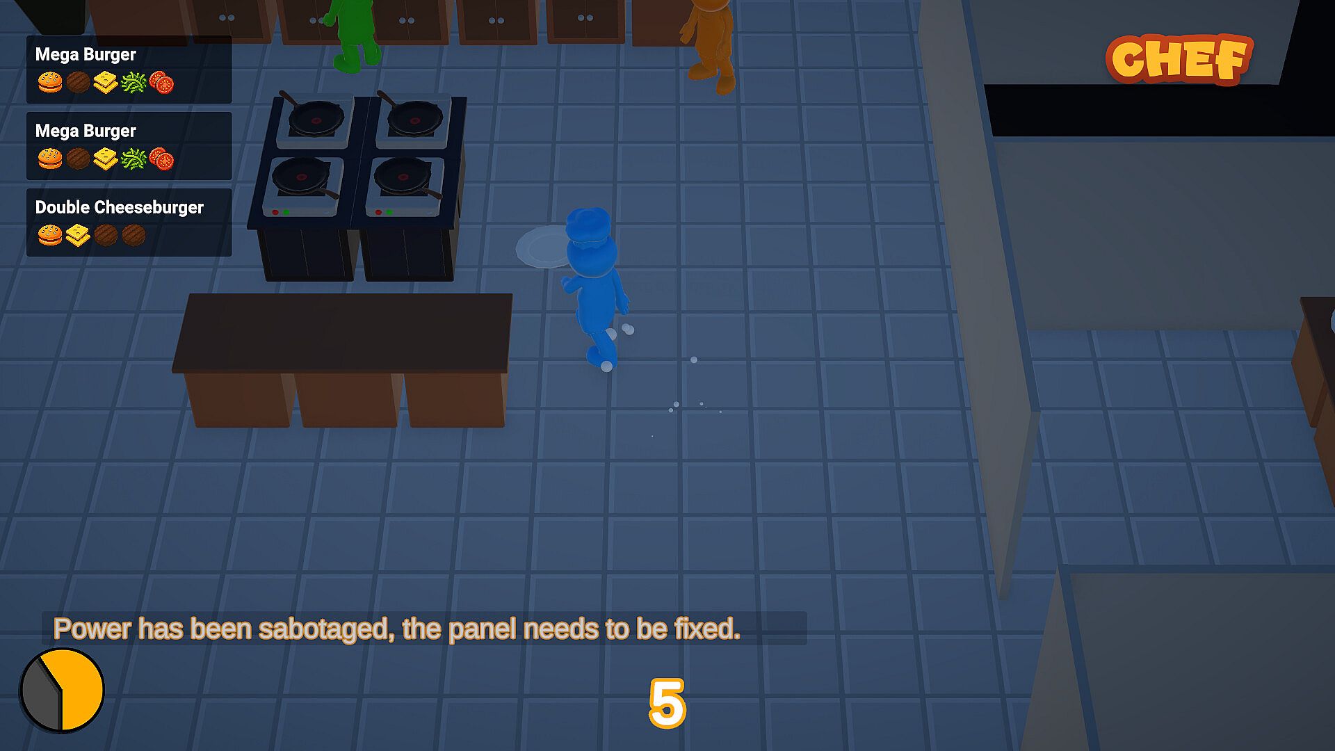 Traitor's Kitchen is a social deduction party game where chefs rush to deliver meals on time while the traitor tries to ruin the deliveries.