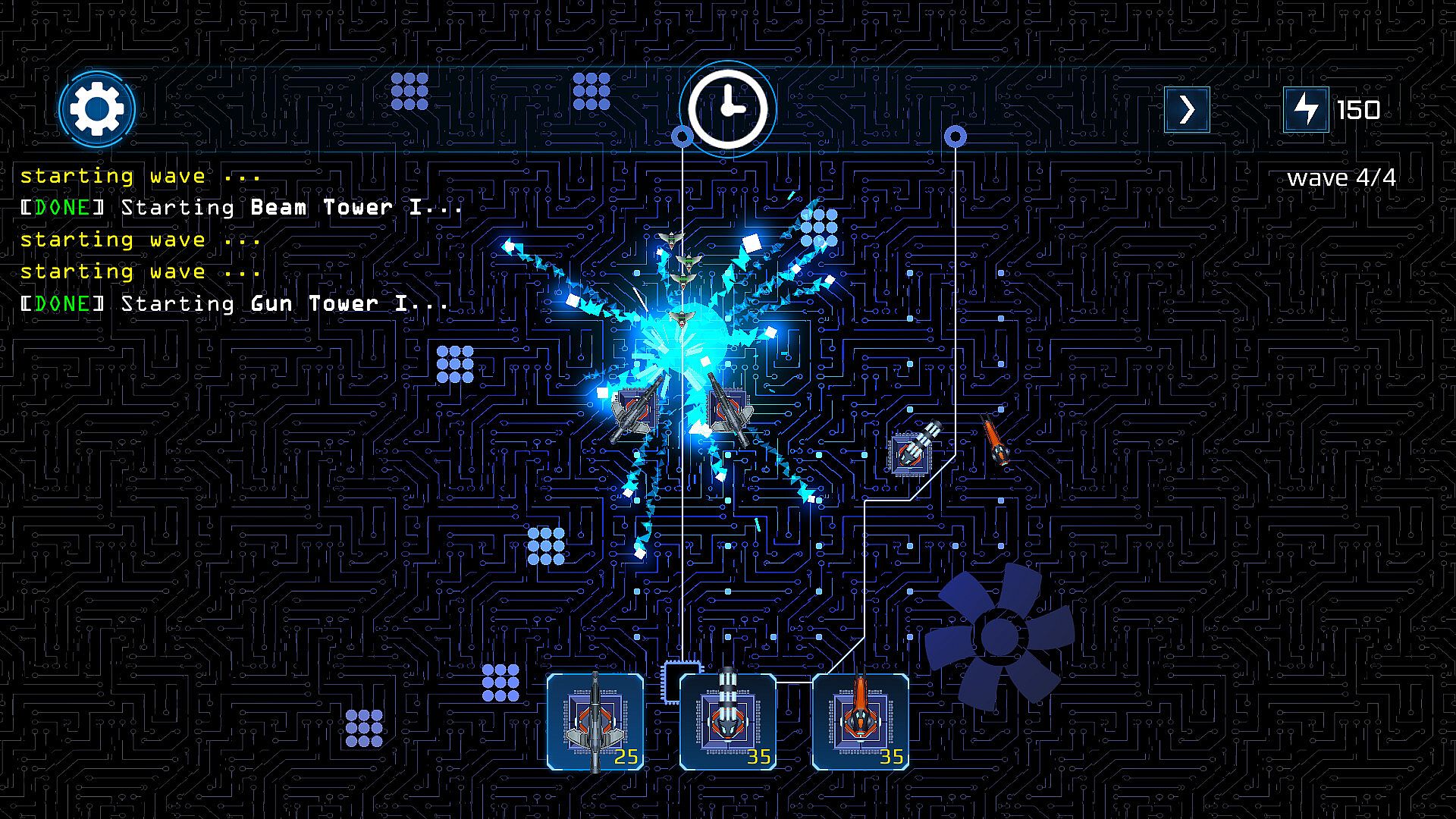 Each enemy wave becomes more challenging as the AI evolves, introducing new enemy types and  behaviors. To survive, you'll need to adapt — utilizing a robust shop system that offers meaningful choices and powerful synergies between tower types.