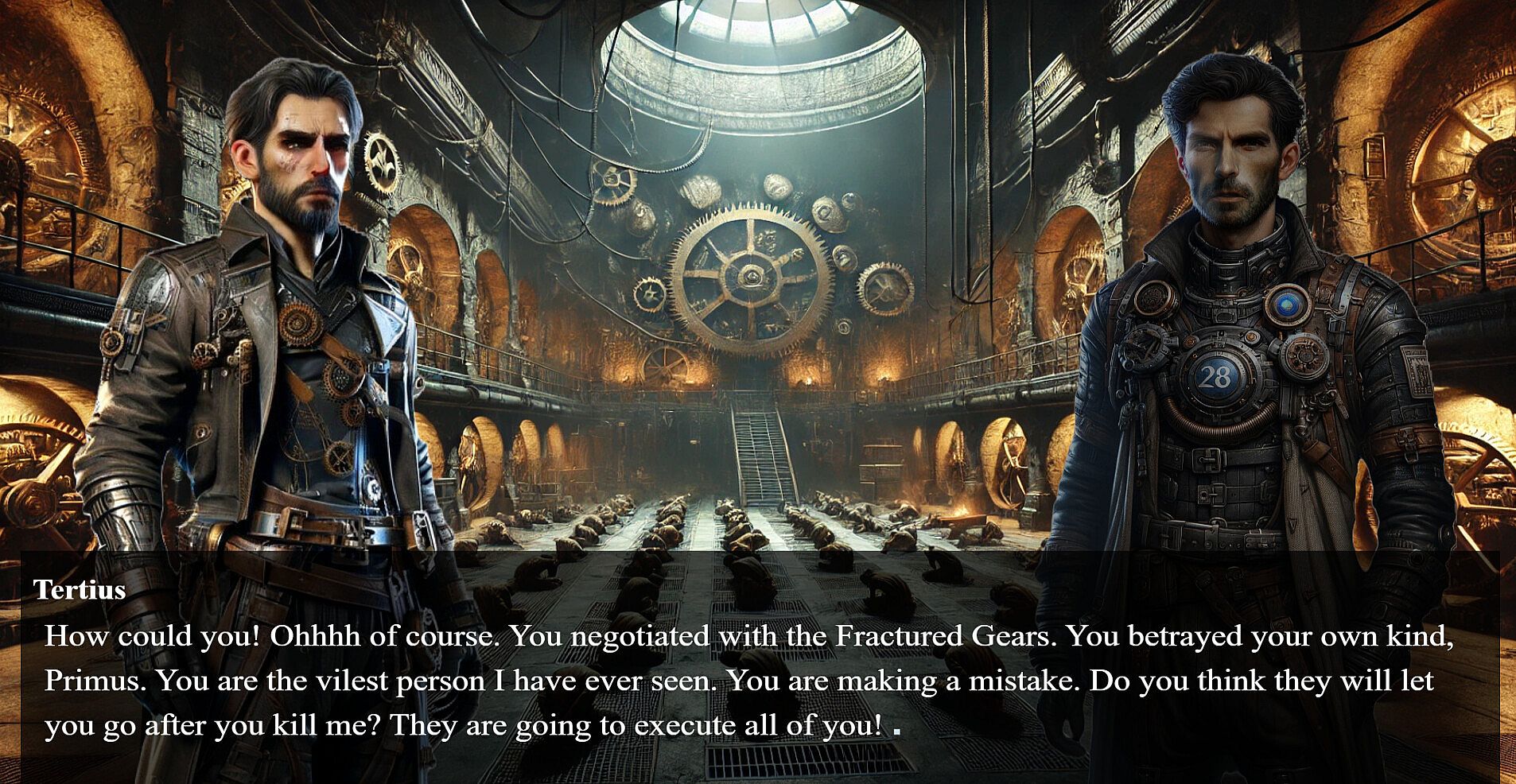 "As Garrett Marek navigates through treacherous challenges and confronts his past, a mysterious figure emerges to guide him to unravel the mysteries of his family's history. With allies turning into enemies and enemies lurking in the shadows, Garrett's journey takes him to the brink of despair and self-discovery. Will he be able to break free from the chains of fate and rewrite his own story by joining the resistance group called ā€œThe Fractured Gearā€, or is he destined to be a pawn in a larger game of power and manipulation? Join Garrett on a thrilling and suspenseful adventure where nothing is as it seems, and every choice could lead to either salvation or destruction."