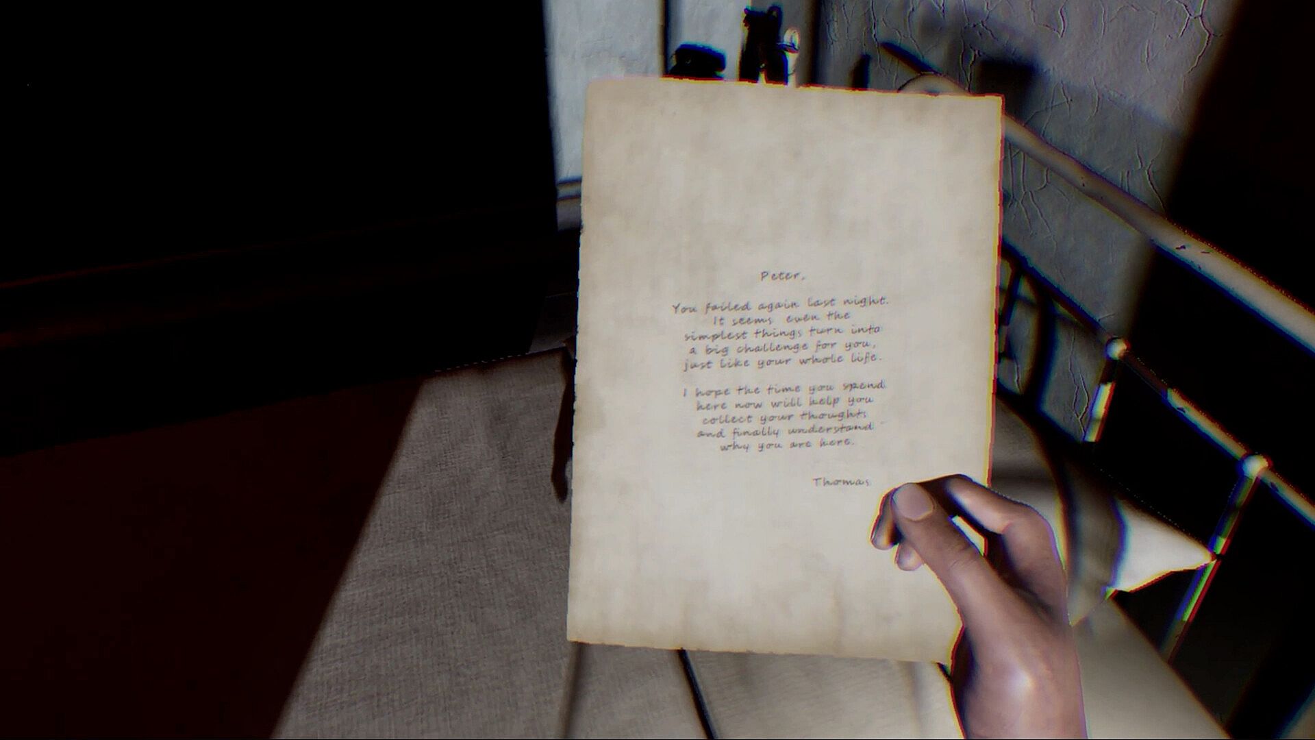 Environmental Storytelling: Piece together the narrative through scattered diary entries, medication bottles, and audio recordings from your mother, Mari. Every artifact you find uncovers a layer of the trauma that has kept Peter trapped for so long.