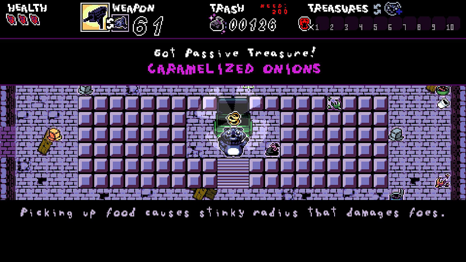 Trash Dungeon is an action-packed dungeon roguelike where you play as a rabid raccoon stealing trash and treasure in a trash dungeon.
