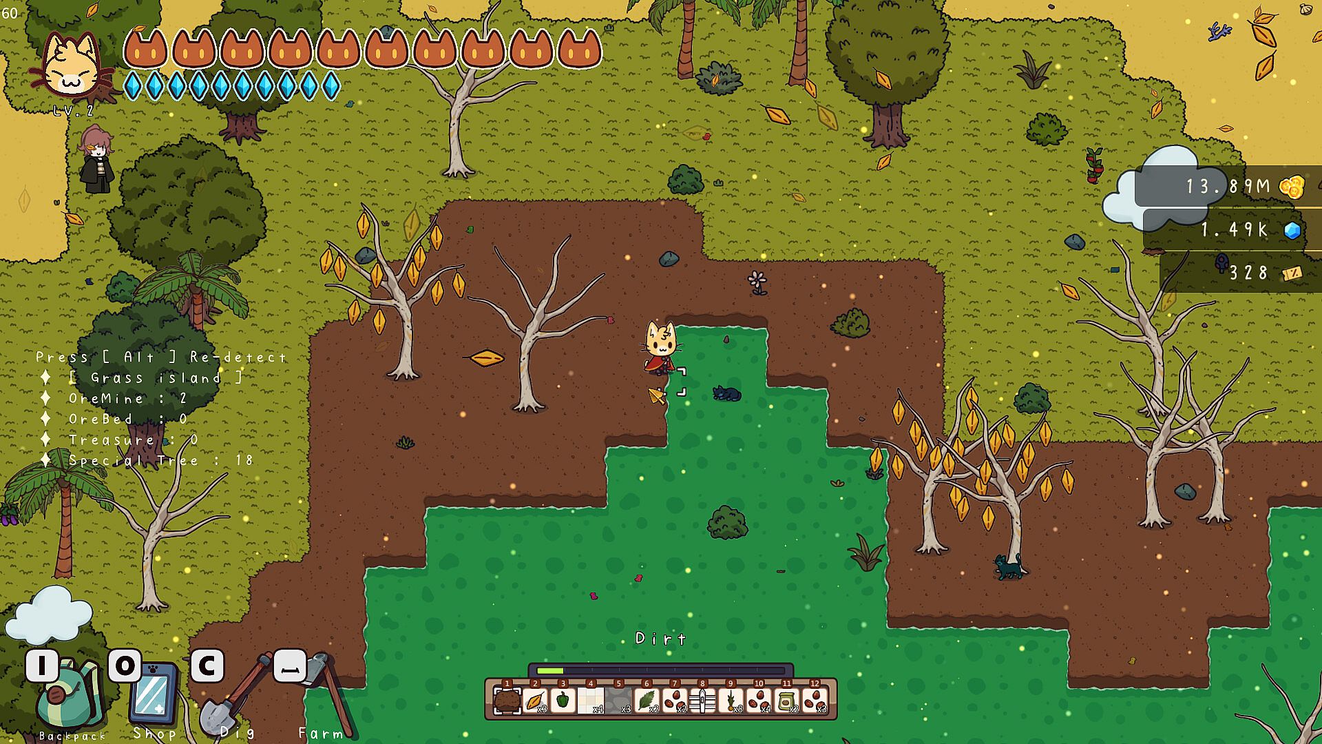 This is a comprehensive game that allows you to happily plant trees, vegetables, and a variety of strange plants in an island farm simulation. When you first enter the game, the island will randomly generate types, but if you like more lighting, green spaces, or golden grasslands, the game can completely and unlimitedly generate new maps until you find your dream home. In the map, you can freely design and arrange every inch of land you step on, do various planning and arrangement that you like, plant flowers or crops, build your own small house, decorate with various furniture, and even raise cute cats.