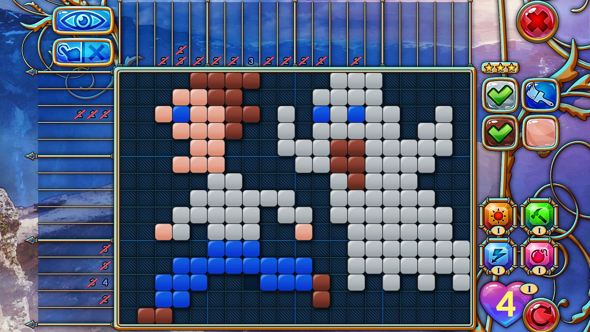 - 140 color-coded nonograms, 20 bonus nonograms + 20 additional puzzles
